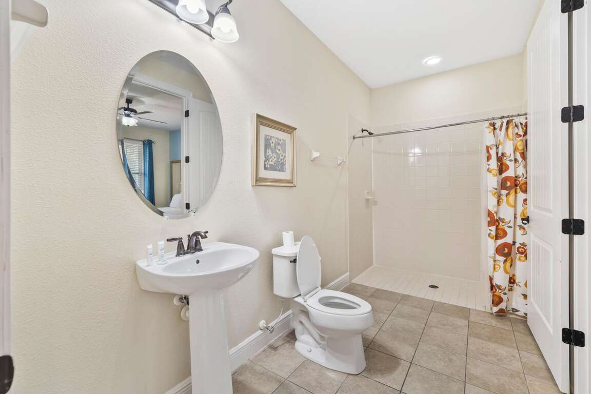 Bathroom 3 – 1st floor in Bedroom 3, roll-in shower (*accessible shower)<br />
