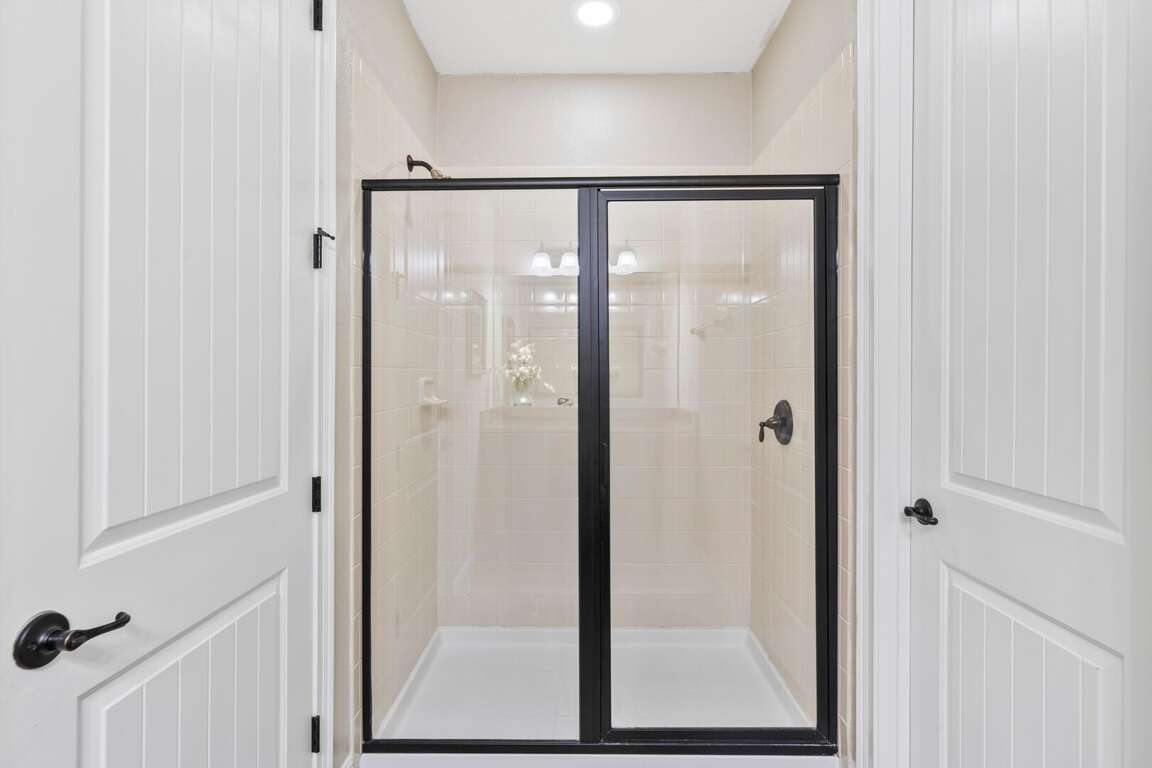 Bathroom 4 – 2nd floor in Hallway, glass enclosed shower<br />