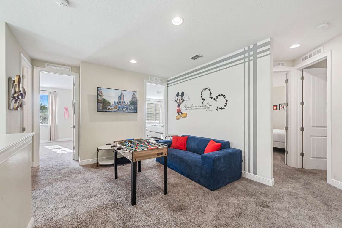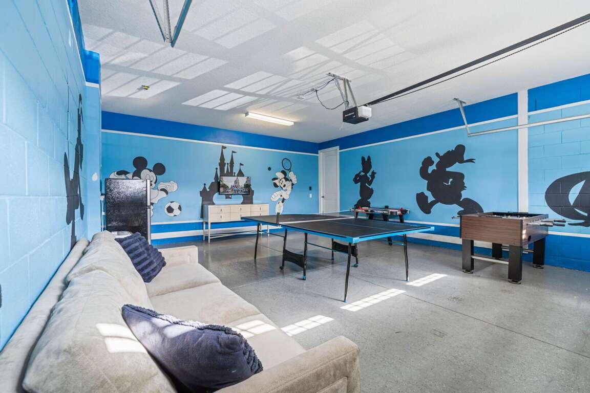 Entertainment continues inside with the home’s vibrant game room, fully equipped with a ping-pong table, air hockey, and foosball. This dedicated space ensures hours of enjoyment for guests of all ages, making it a favorite hangout spot for friendly competition and family fun.<br />