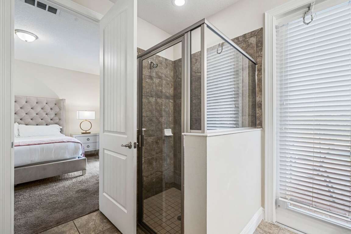 Bathroom 10 – 2nd floor in Bedroom 10, glass enclosed shower<br />
