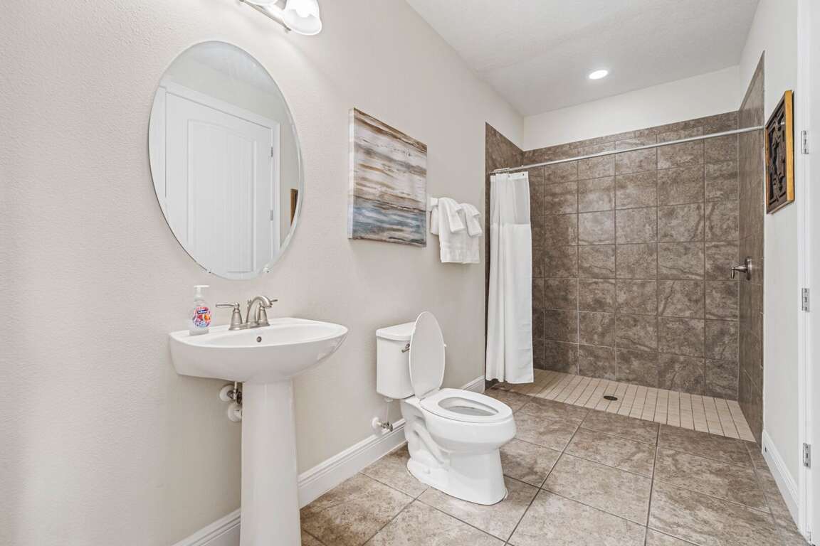 Bathroom 3 – 1st floor in Bedroom 3, roll-in shower (*accessible shower)<br />