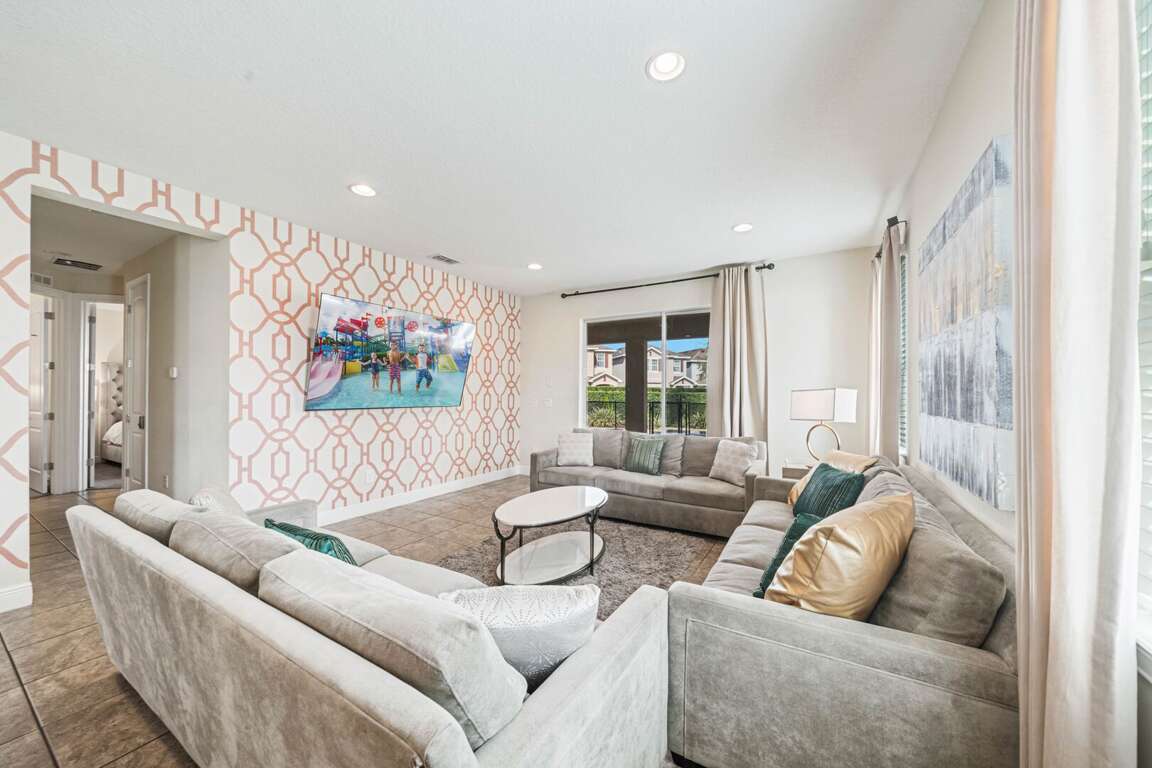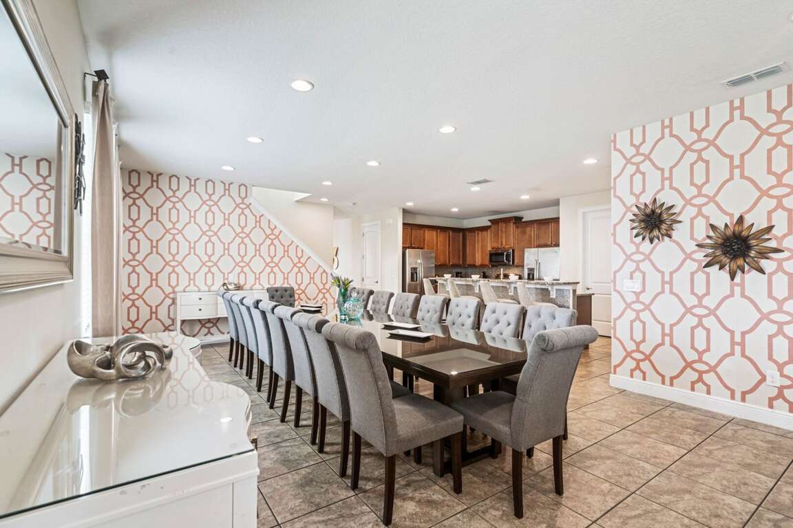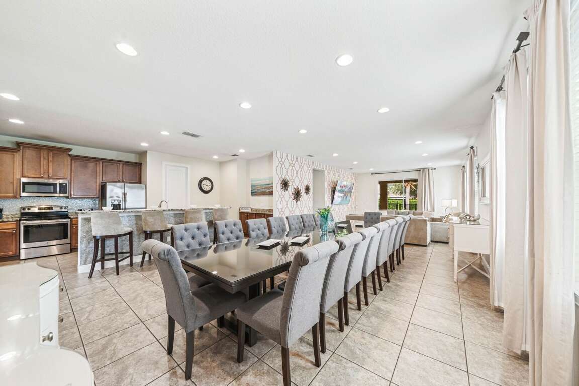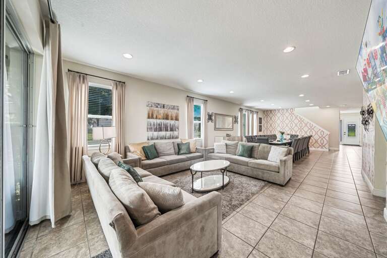 Step into this beautifully designed home, where the bright and spacious living area welcomes you with a comfortable sectional sofa, contemporary decor, and a wide-open layout perfect for gathering and relaxing. The modern kitchen features rich wood cabinetry, dual refrigerators & dishwashers, and a generous breakfast bar, offering both convenience and style. Just beyond, the expansive dining room provides ample seating for large groups, setting the stage for shared meals and memorable gatherings.<br />