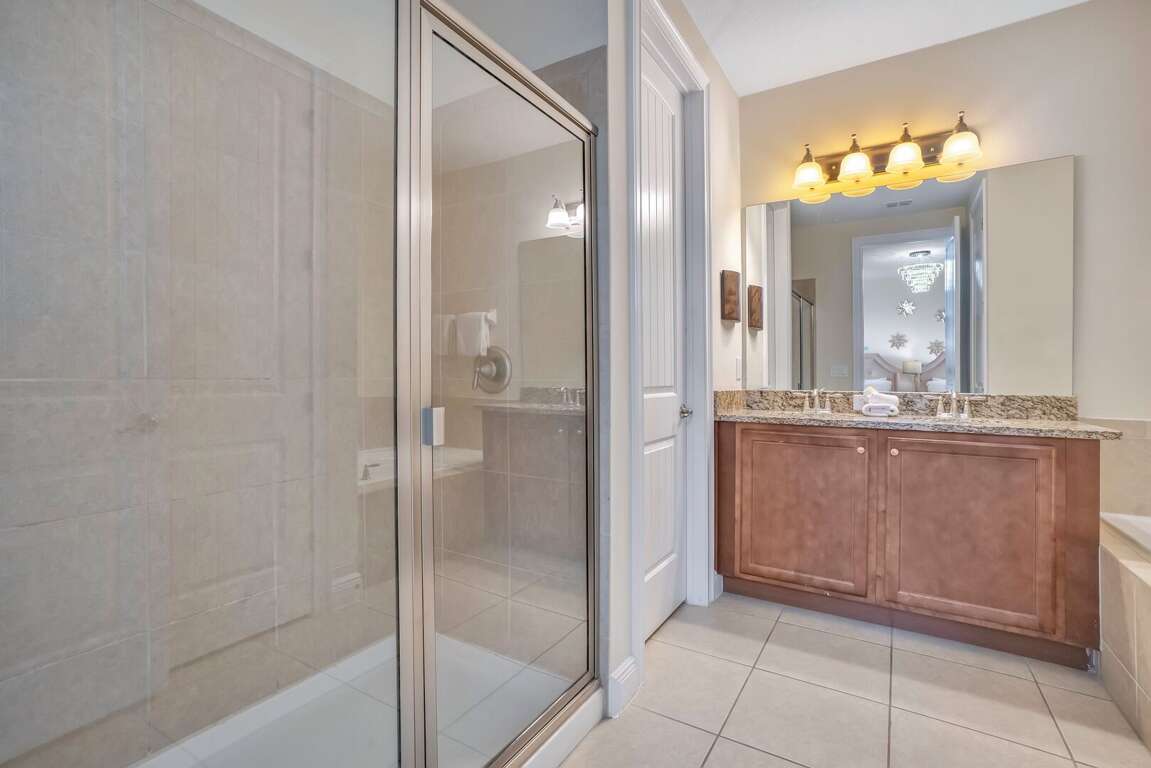 Bathroom 9 – 2nd floor in Bedroom 9, dual sinks, glass enclosed shower, soaker tub<br />