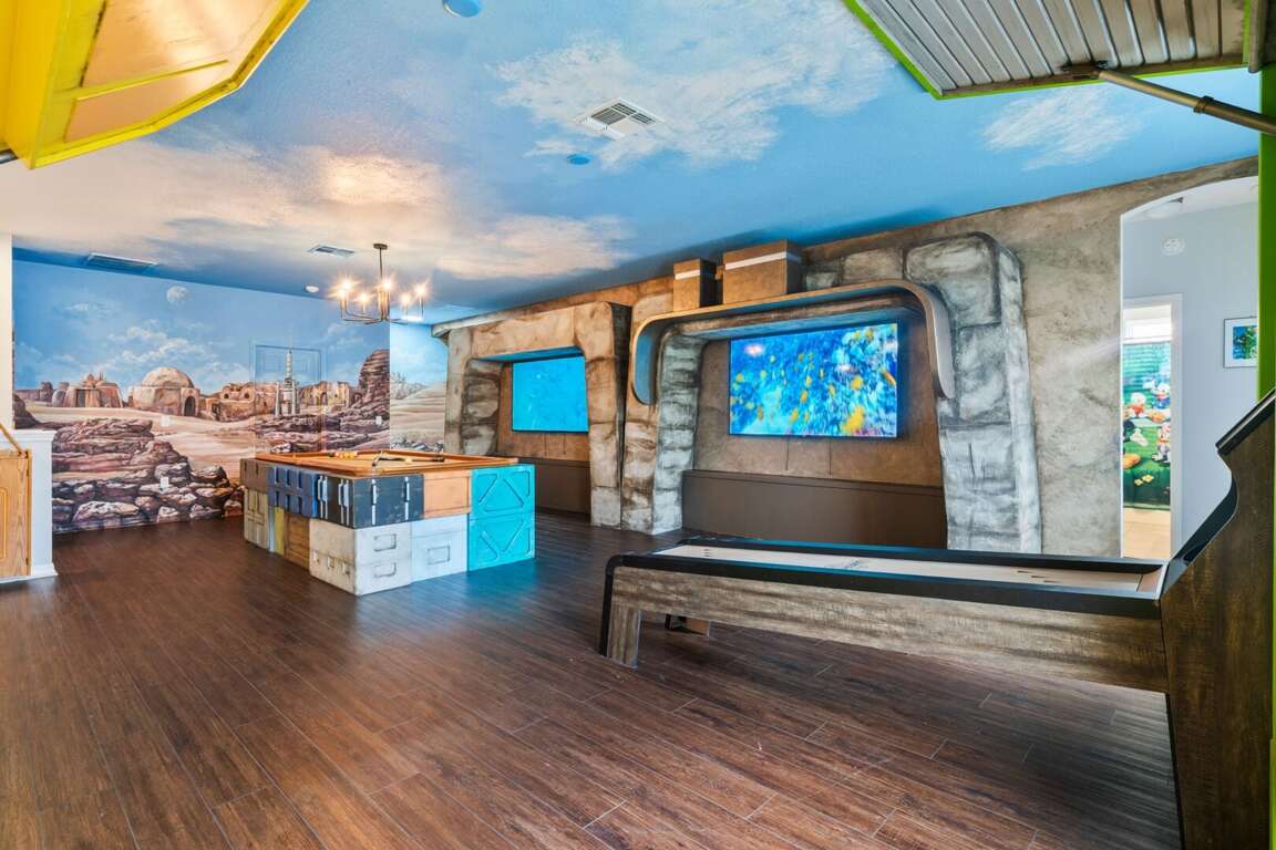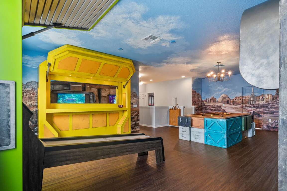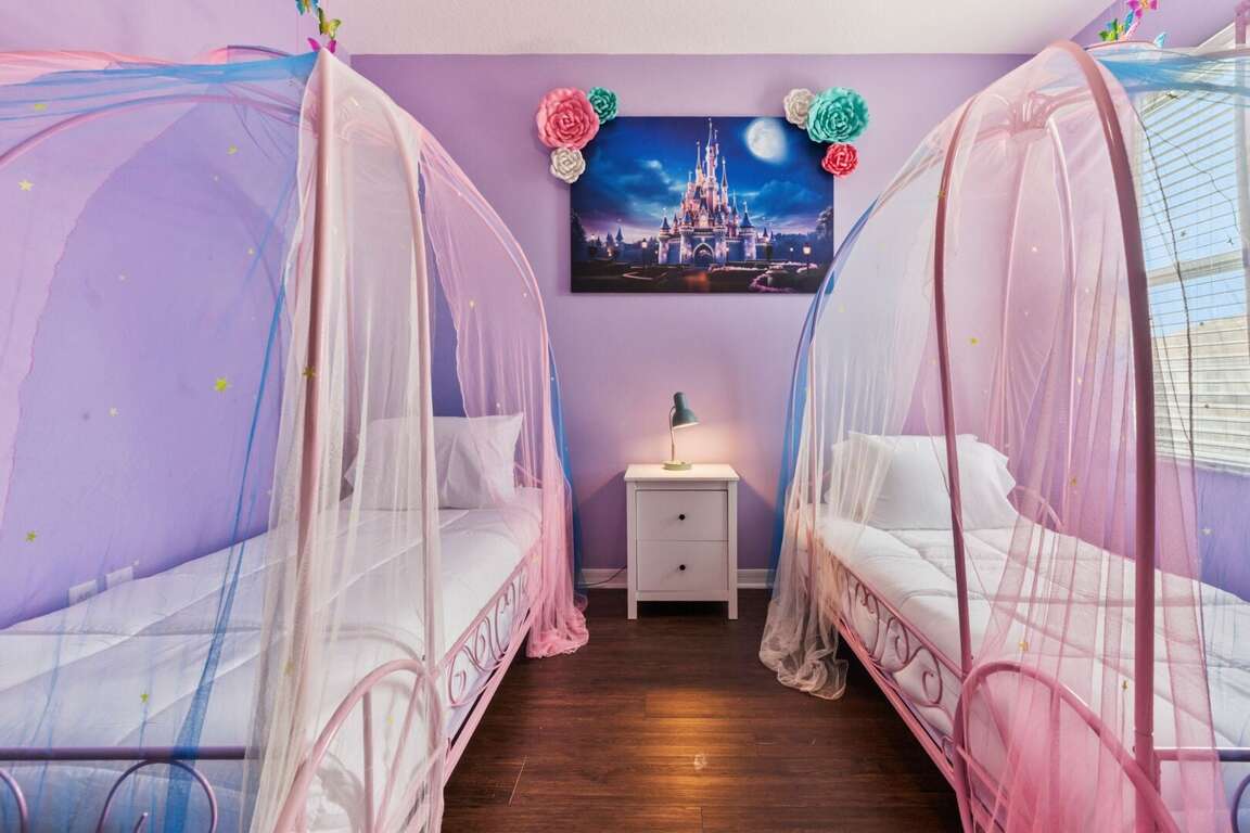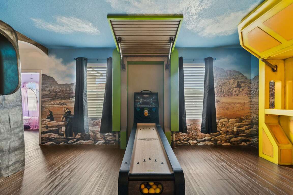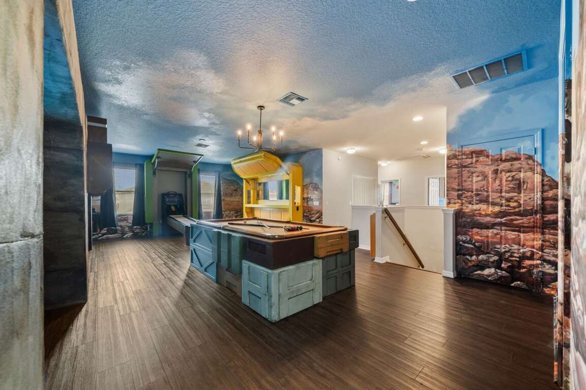 Large house in Davenport with 13 bedrooms, themed rooms, and a private pool, plus a chef’s kitchen and game options for group trips near Disney.