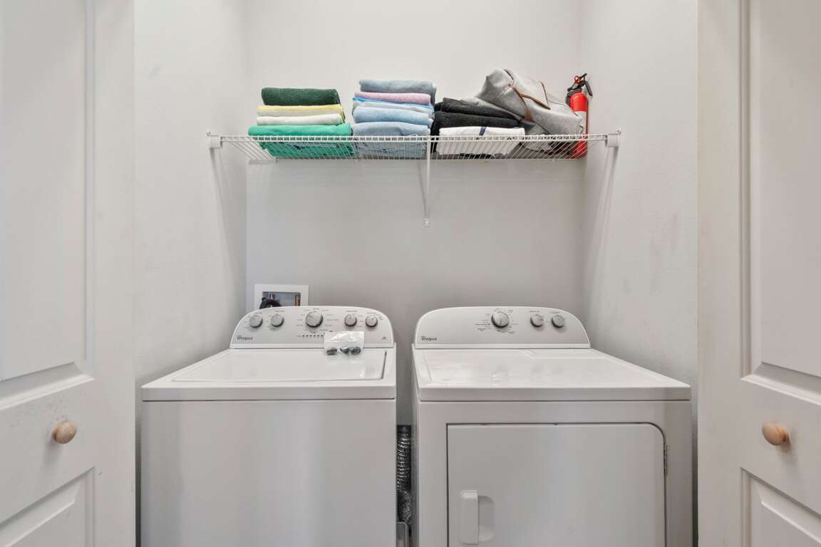 Upon entering, you’ll notice the spacious living, dining, and kitchen area decked with contemporary furniture and high-end kitchen appliances. The living area features a large, comfy sofa and a mounted flat-screen TV - perfect for family activities and relaxation! The chef in your group will love the kitchen, complete with stainless steel appliances, dual refrigerators, and dishwashers, making it a breeze to prepare meals for large groups.