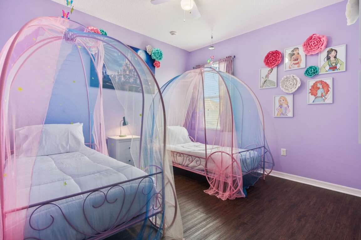 When you’re ready to call it a night, head to one of the 13 bedrooms, including three master suites on both levels with an ensuite bathroom. Several bedrooms feature bunk beds and fun themes, which both kids and adults are sure to love.