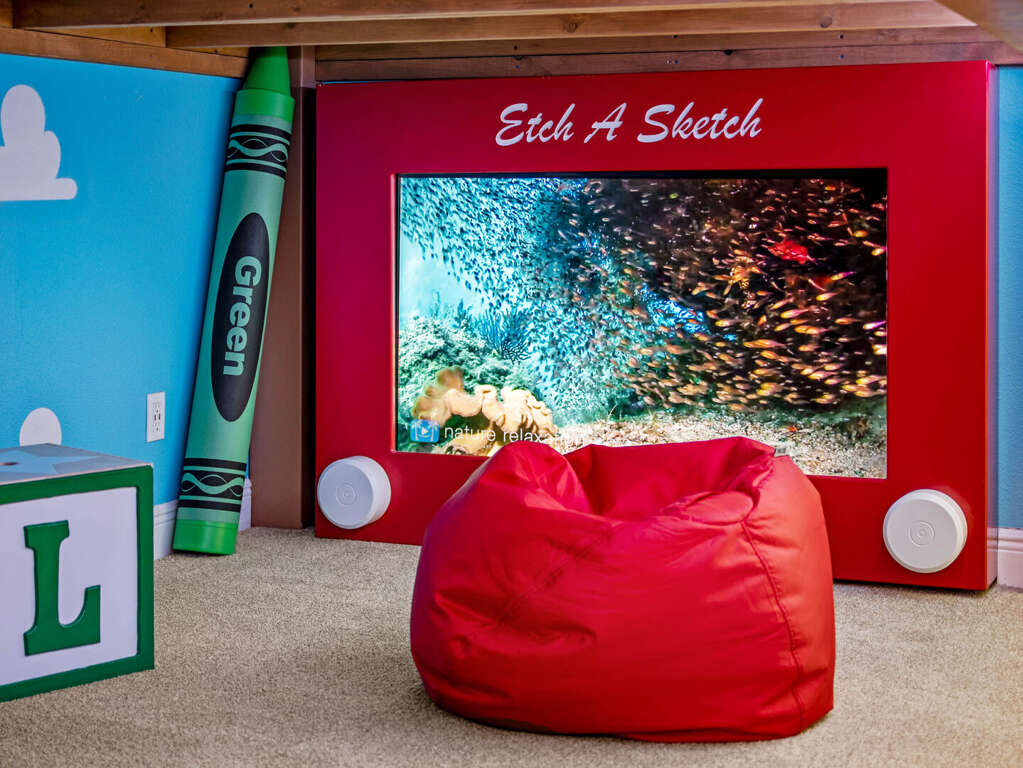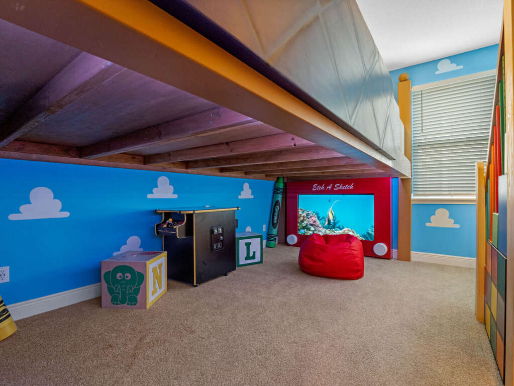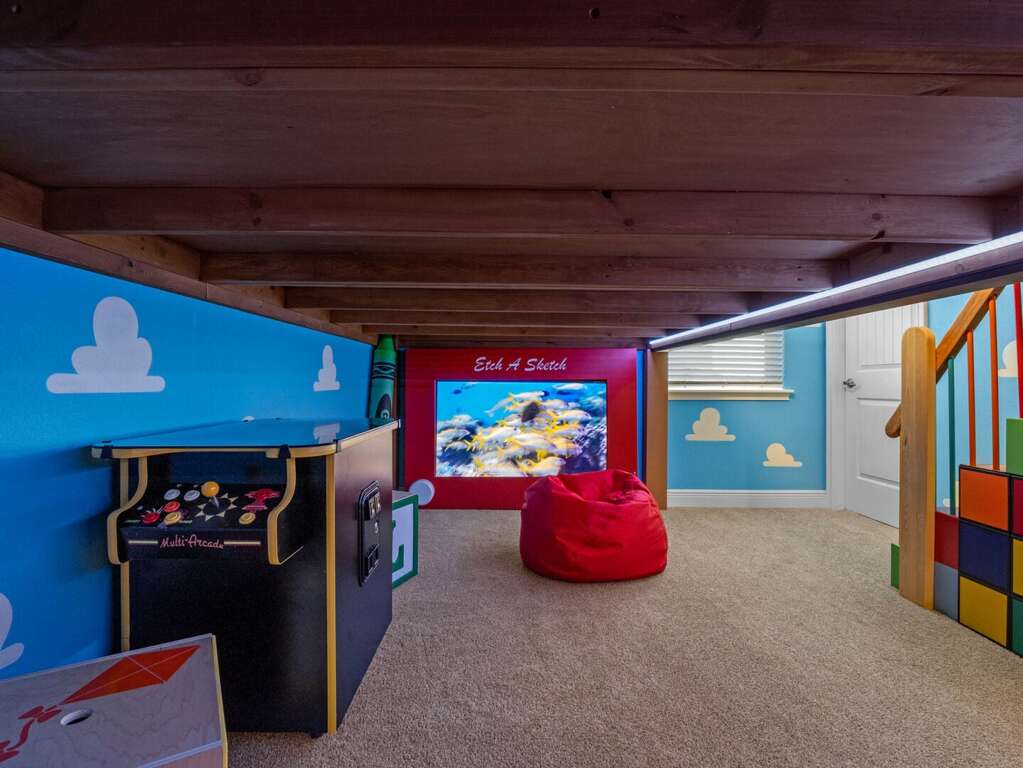 Speaking of entertainment, head upstairs to the Toy inspired game room with multiple arcades and a couple of funhouse mirrors perfect for taking funny photos. Movie night may never be the same after you view your favorite film in the vintage 1930’s movie theater.
