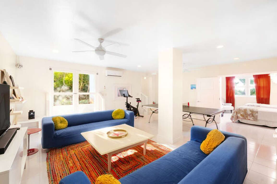 Do not look any further! This mint, five-bedroom has it all and is in the BEST location. It is perfect for families (or a group of friends) with its new, fully gated private pool (CAN BE HEATED FOR A FUEL FEE OF $55 PER DAY), heavenly outdoor shower, 800 sq ft, wrap-around, screened-in porch, multiple decks that offer both shade or sun, a bonus room with ping-pong, a Soul-Cycle bike, and Roku TV. The house has spectacular views of BOTH the Atlantic and Caribbean and in less than 60 seconds the two golf carts whisk you off to the stunning, mile-long, pink sand beach.