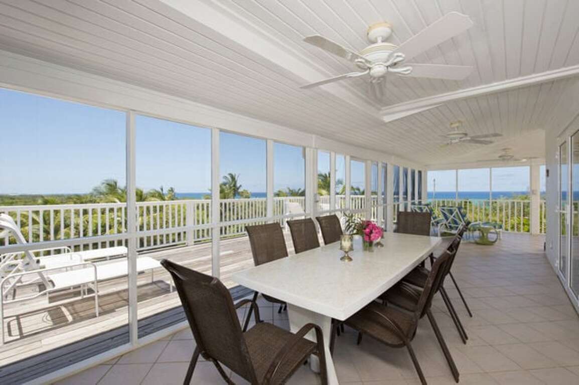 This is a beautiful 5 bedroom house in a very nice area close to Governors Harbor. The house has all the amenities including a wonderful screened porch, enormous kitchen, a sun deck, even a ping pong table. The nearby beach is gorgeous. We had a great vacation.