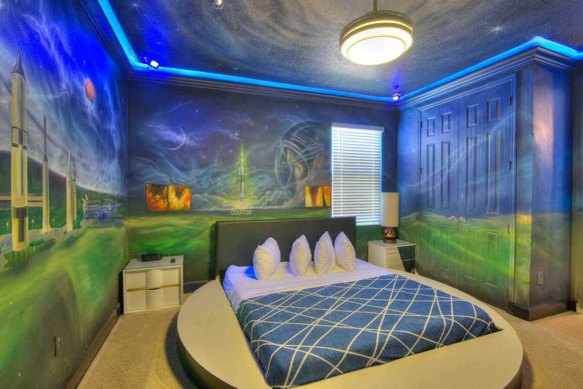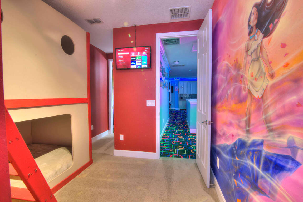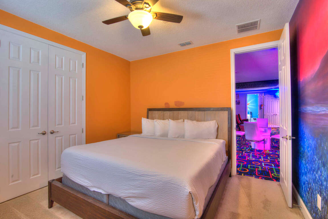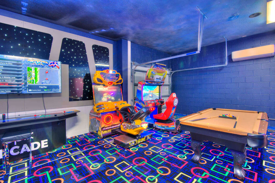Luxury 14-bedroom villa in Davenport, FL with private pool, bowling lanes, home theater, game room, and space for up to 40 guests.