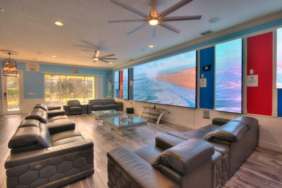 Welcome to America The Beautiful, a luxurious 14-bedroom villa in the heart of Davenport, Florida. Perfect for large families, reunions, weddings, anniversaries, or corporate retreats, this villa accommodates up to 40 guests in comfort and style. Situated in Davenport, Florida, guests enjoy close proximity to Orlando attractions and Disney World. Perfect for group celebrations, this villa combines luxury, convenience, and fun in a safe, gated community. Book America The Beautiful today and create unforgettable memories with family and friends in this spectacular Florida villa!America The Beautiful 14-Bedroom Villa with Private Pool in Davenport, FL