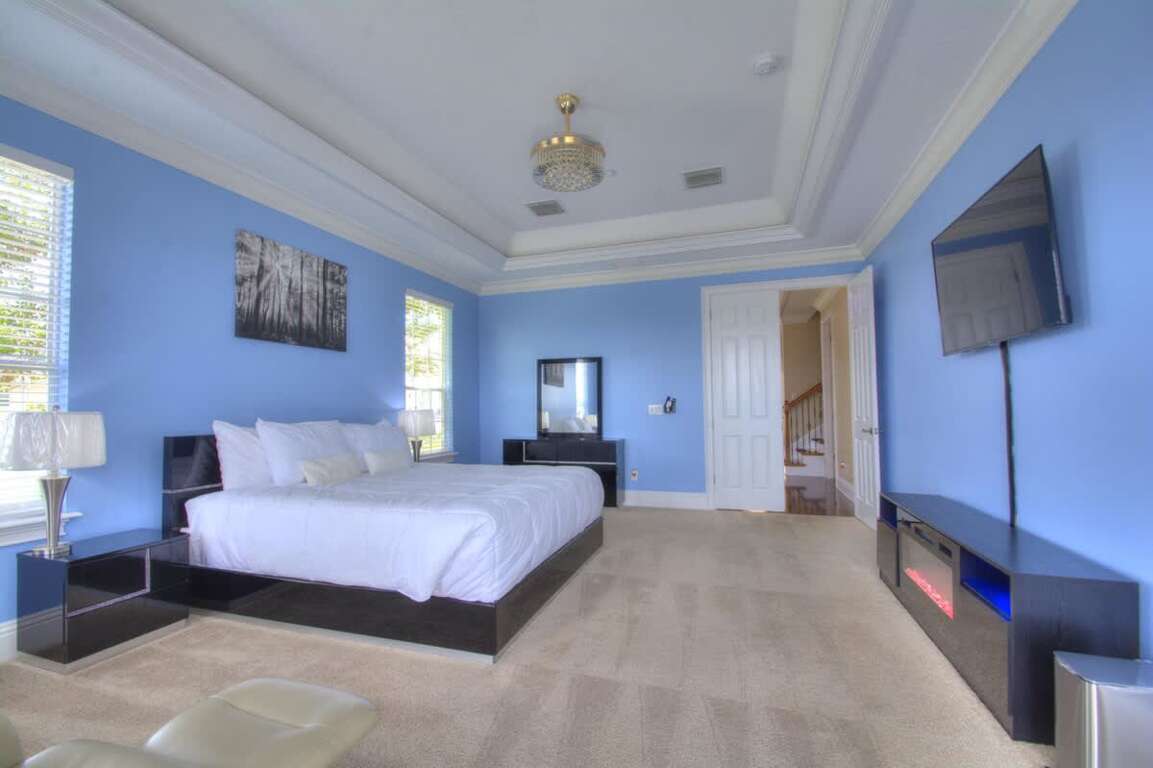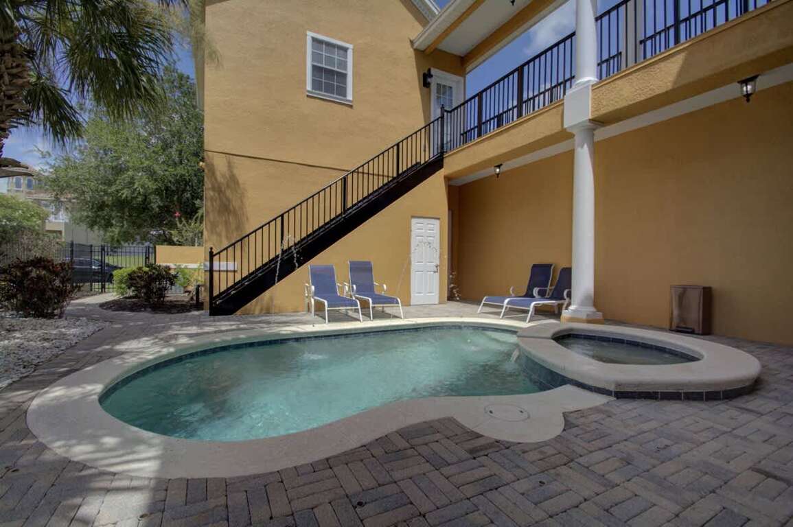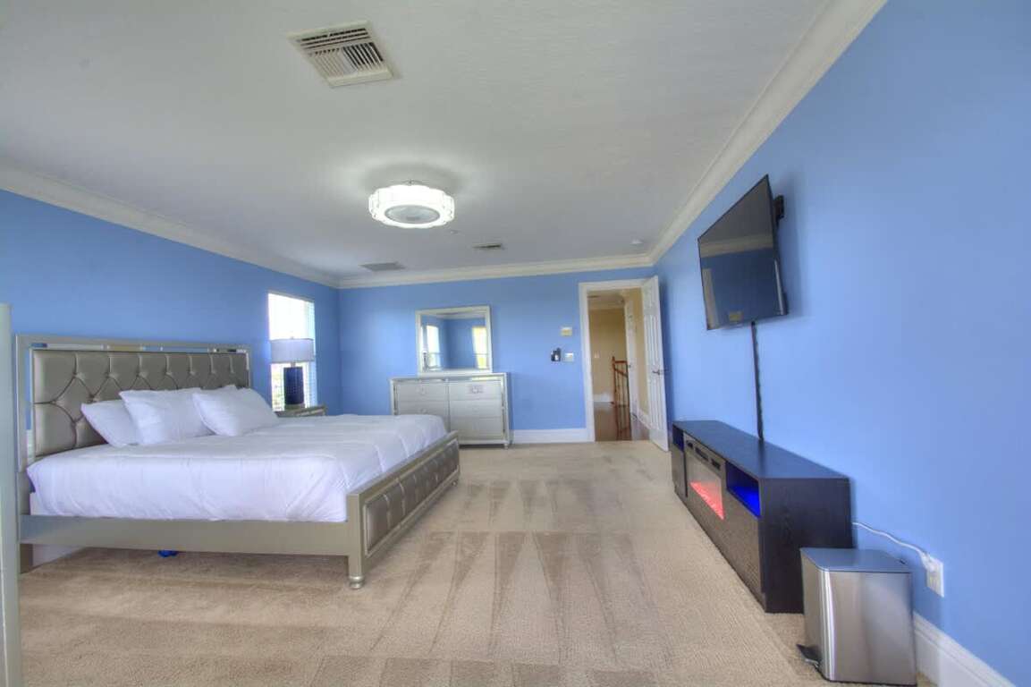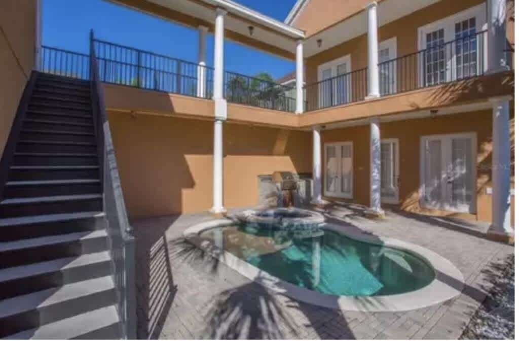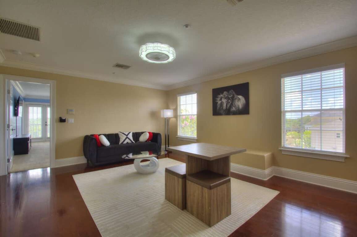 Golf Course Home by Disney Spectacular views of the golf course. This spacious 4312 sq ft, 3-story layout provides an open plan living. LED lights throughout. It is located only minutes to Disney World and all the them park attractions in the Orlando area. The main house has 5 bedrooms (3 king beds, 1 a full-over-full bunk bed +twin trundle, and 1 full-over-twin-over queen bed) and 5 baths. The guest house has 1 bedroom (queen) and 1 bath and its own private entrance, which guarantees guest privacy and comfort. The first floor bathroom is in the main house. Upstairs, there are 3 walk in shower bathrooms and 3 bathtub bathrooms. The 7th half-bath is on the pool deck. No local charges apply.