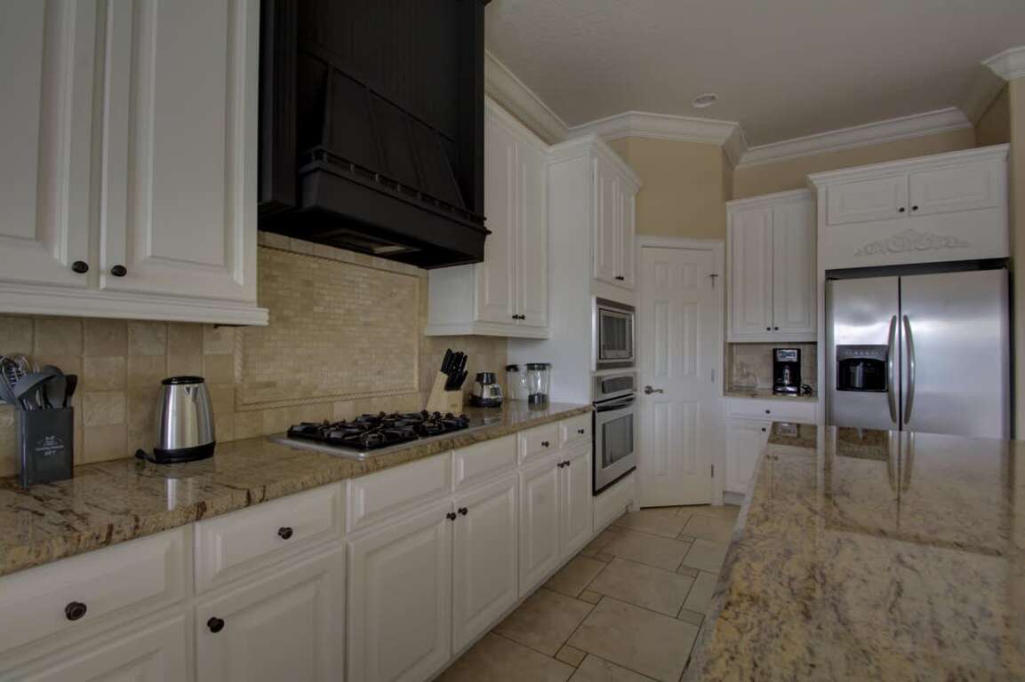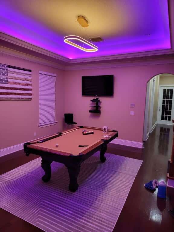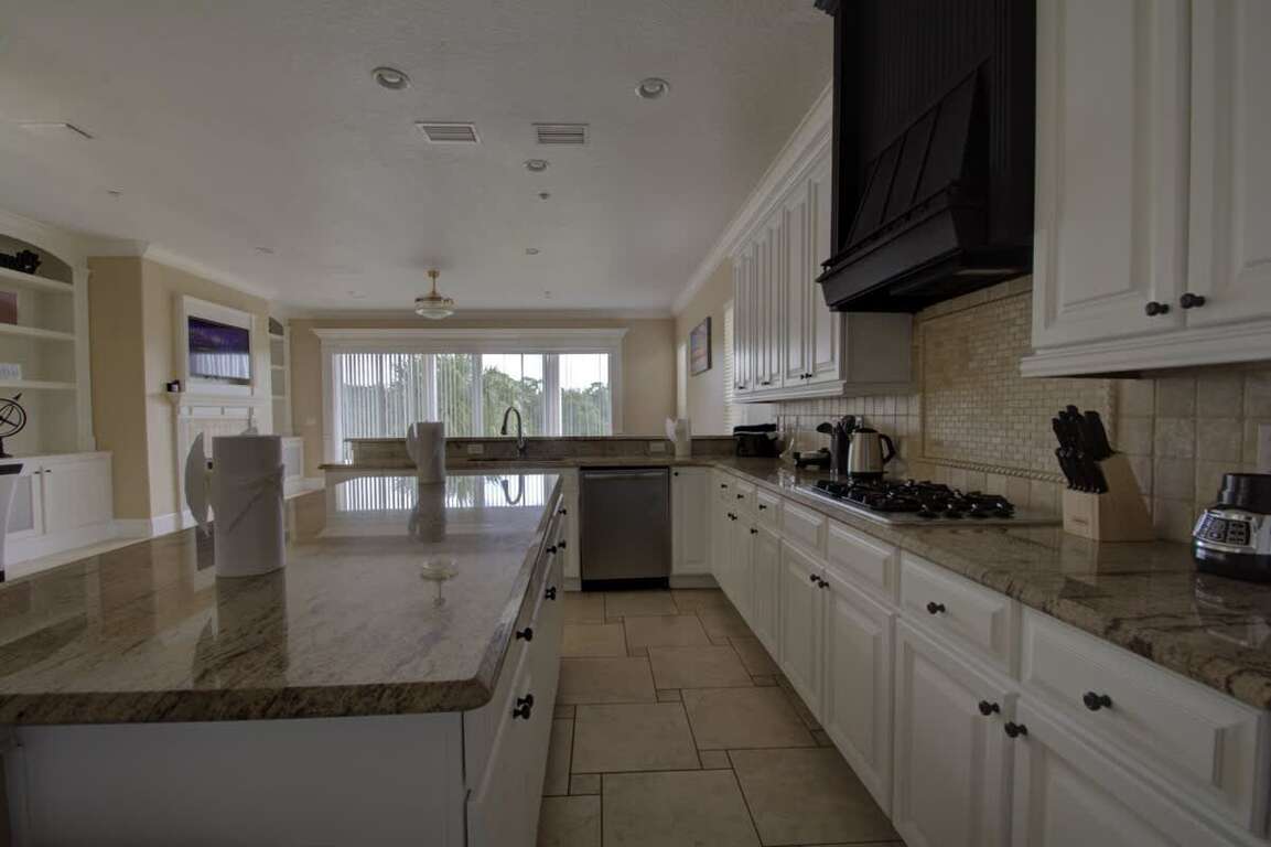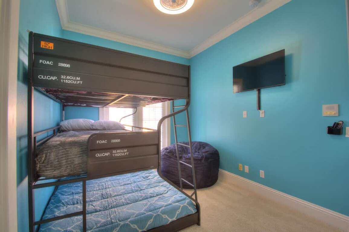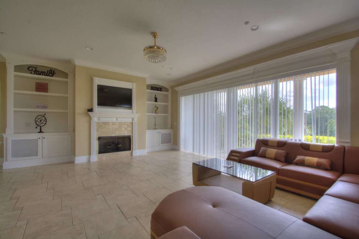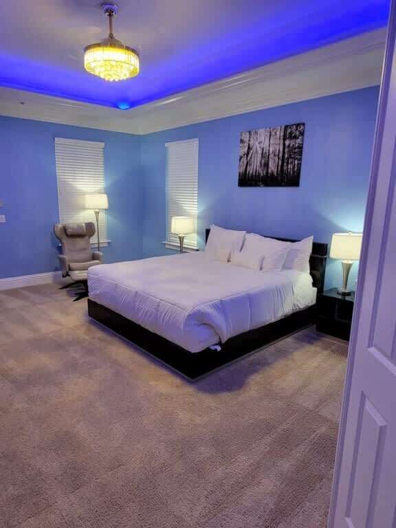 Golf Course Home by Disney Spectacular views of the golf course. This spacious 4312 sq ft, 3-story layout provides an open plan living. LED lights throughout. It is located only minutes to Disney World and all the them park attractions in the Orlando area. The main house has 5 bedrooms (3 king beds, 1 a full-over-full bunk bed +twin trundle, and 1 full-over-twin-over queen bed) and 5 baths. The guest house has 1 bedroom (queen) and 1 bath and its own private entrance, which guarantees guest privacy and comfort. The first floor bathroom is in the main house. Upstairs, there are 3 walk in shower bathrooms and 3 bathtub bathrooms. The 7th half-bath is on the pool deck. No local charges apply.
