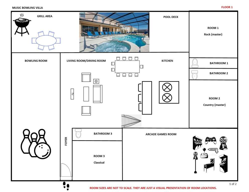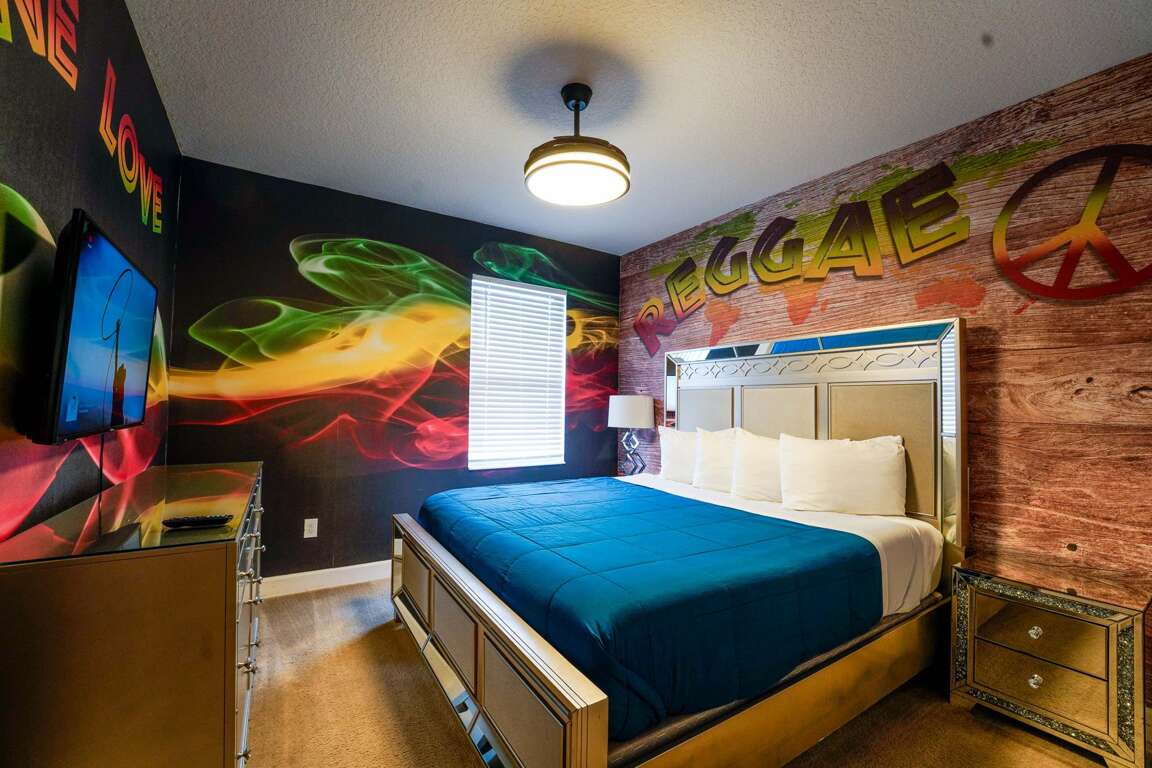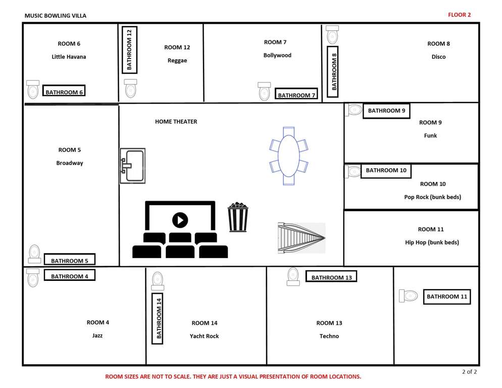 DJ play my favorite song! Do you love music? If so, the Music City bowling villa is perfect for you and your group. Each room in the villa is themed around a different musical genre–from country, to rock-and-roll, to reggae, techno, classical music–the villa can satisfy the music enthusiasts. No local charges apply.