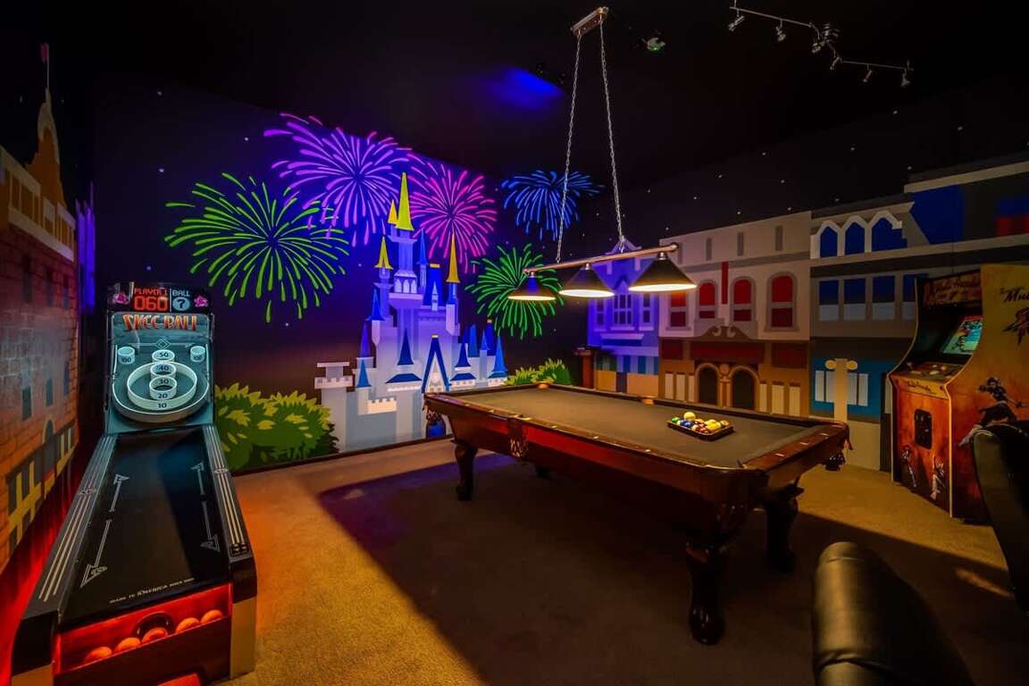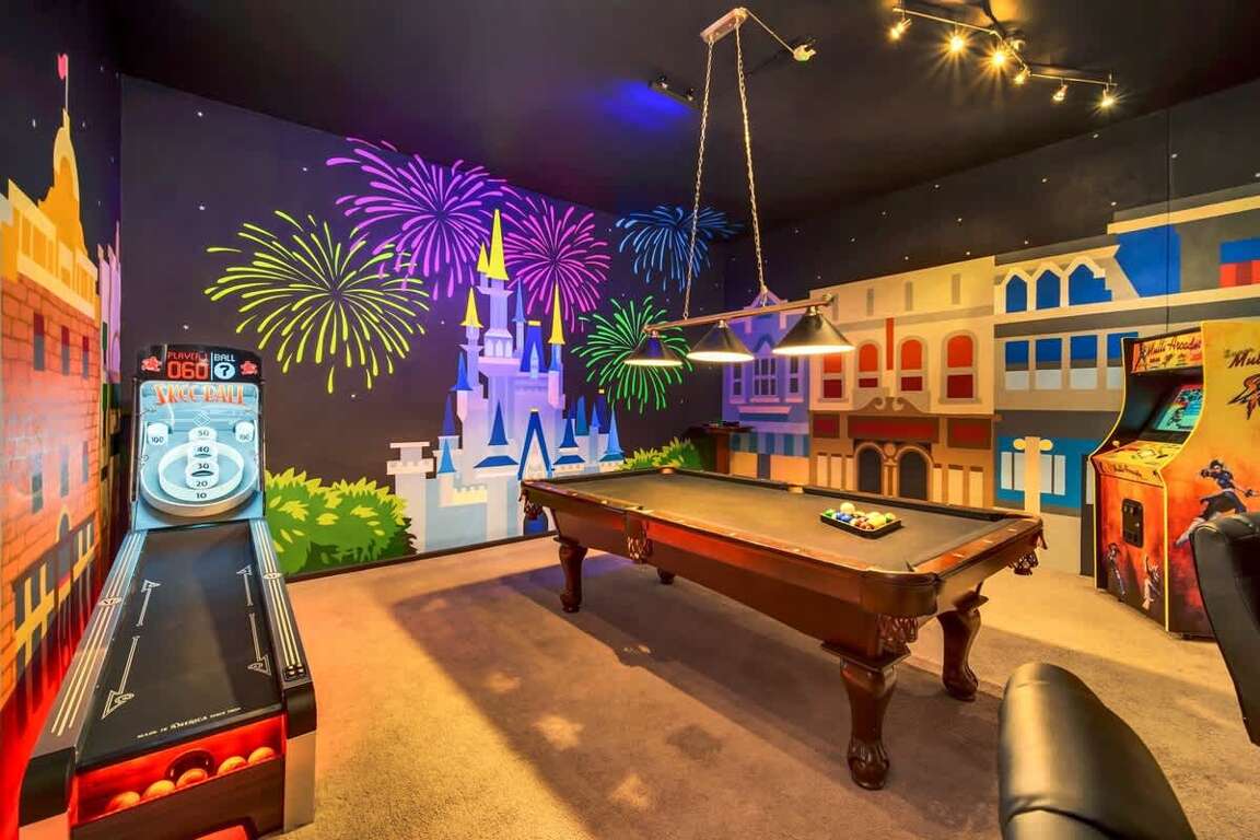 Main Street USA in Luxury Reunion Home If you're bringing a big group with you on your next trip to Florida, you're probably looking for a luxurious vacation rental with plenty of room for everyone. This 5-bedroom Orlando vacation rental fits the bill! This Reunion home with Main Street USA game room is an absolute dream come true and is just 8 miles away from the first gates of Disney World! No local charges apply.