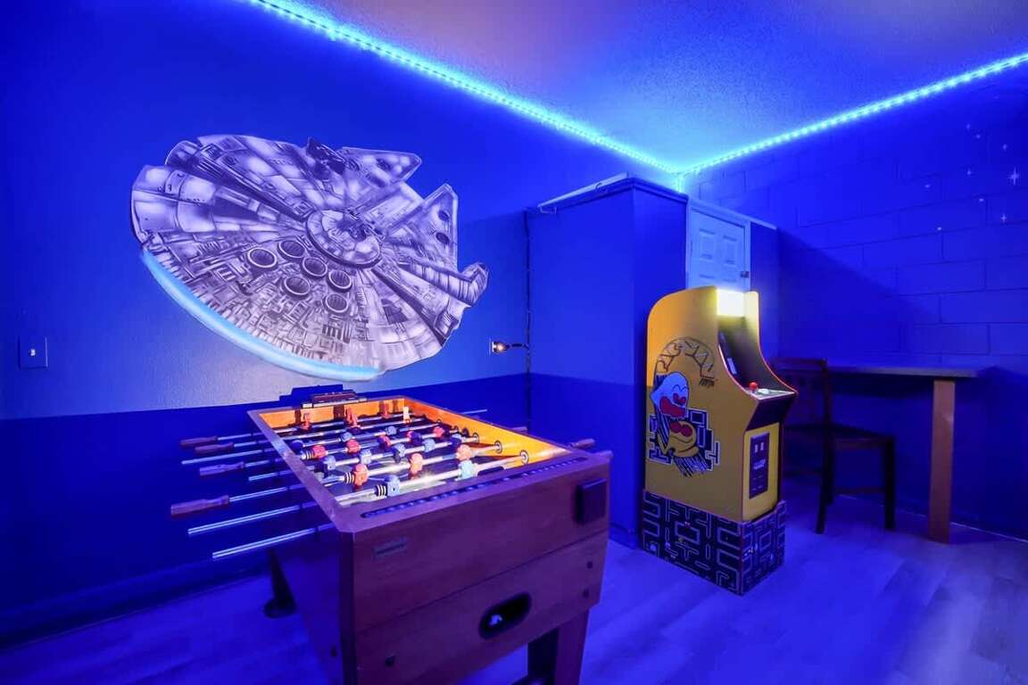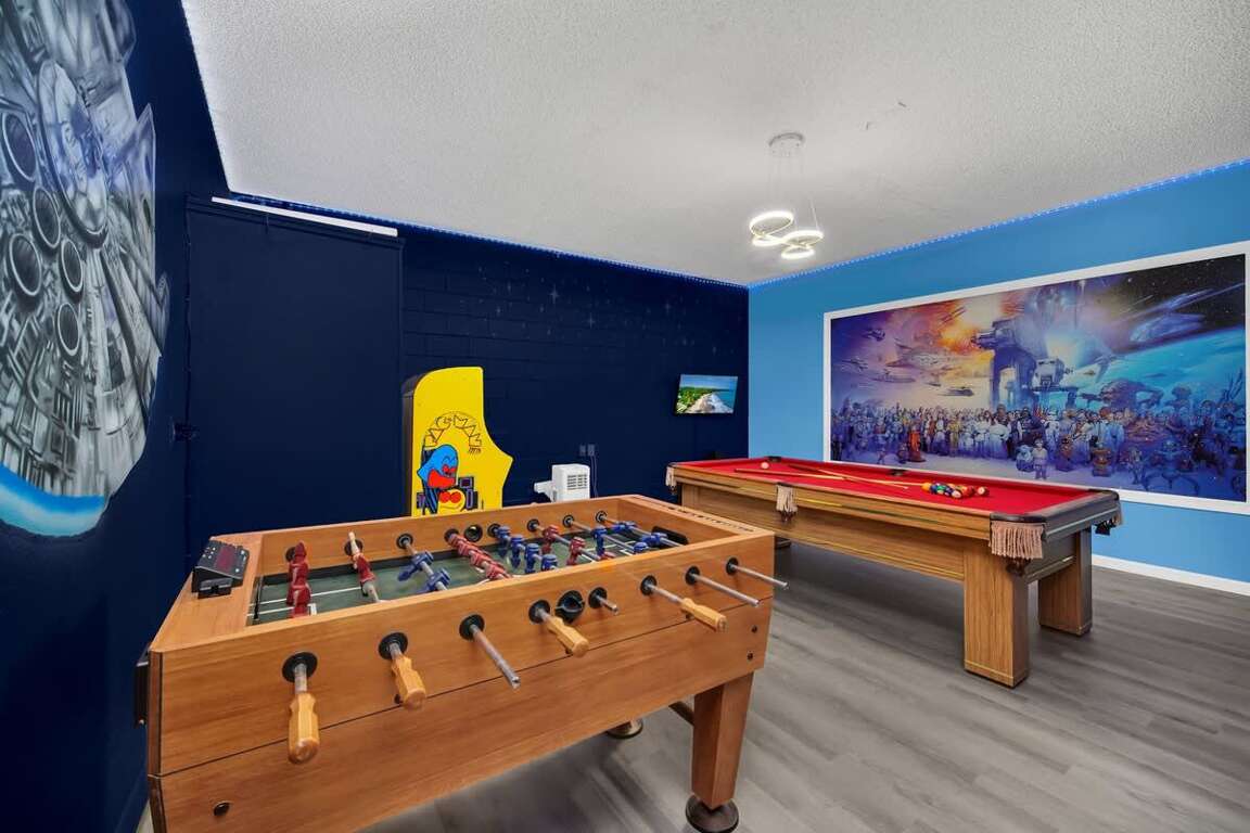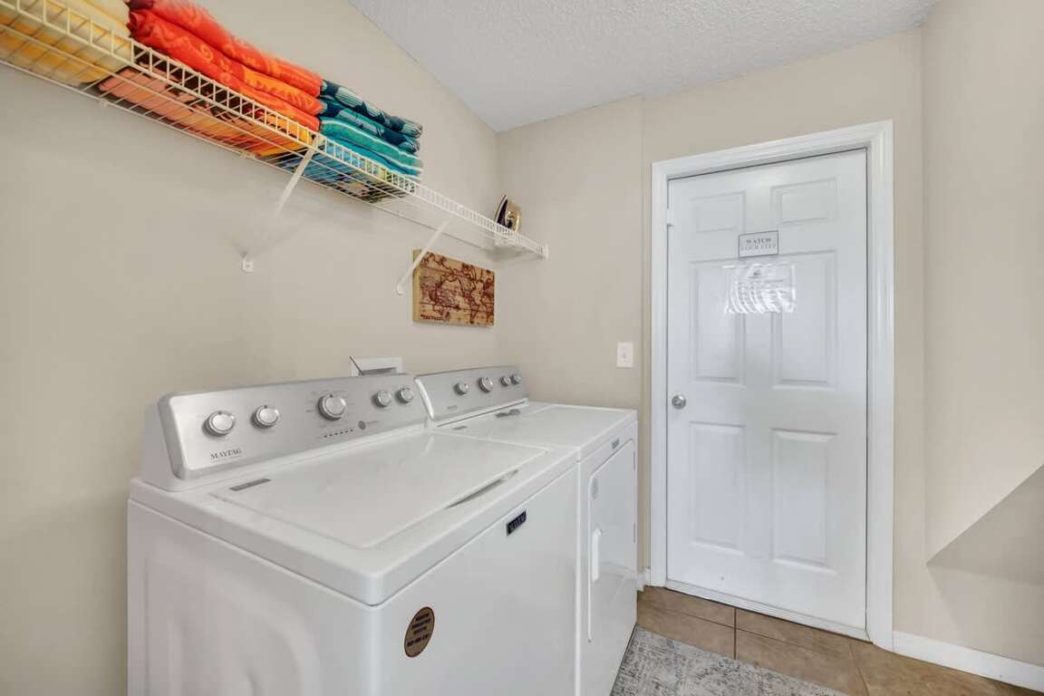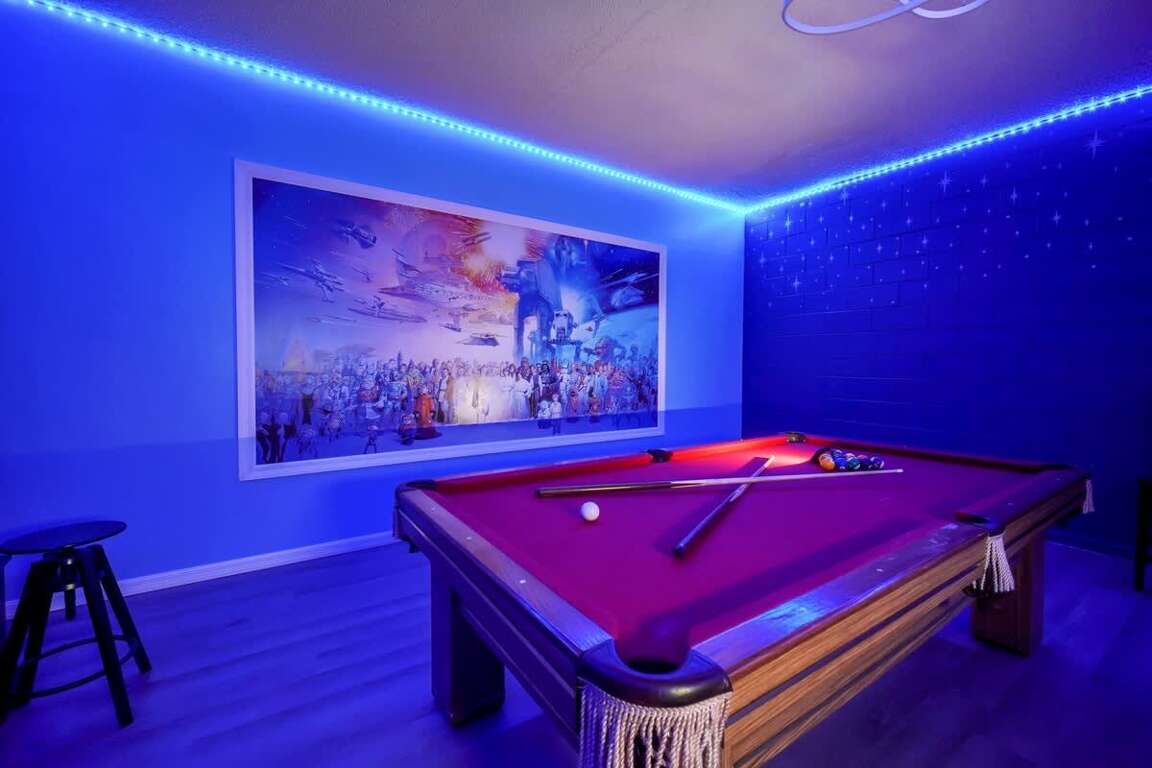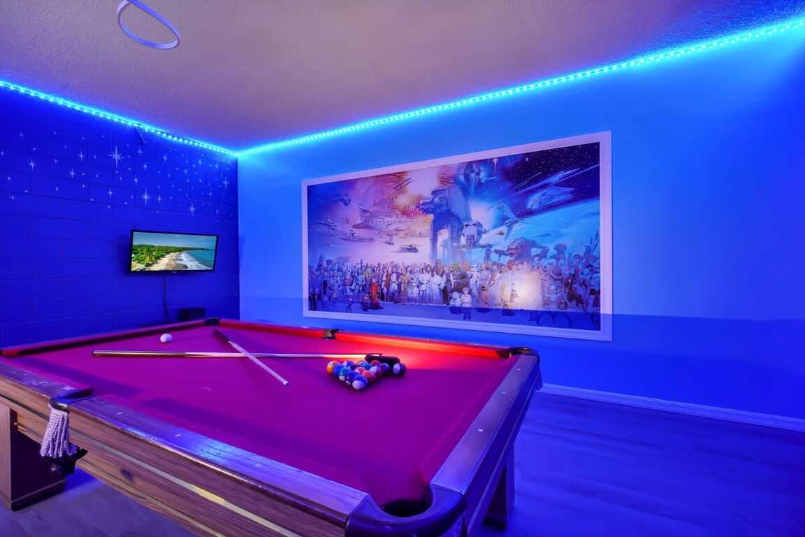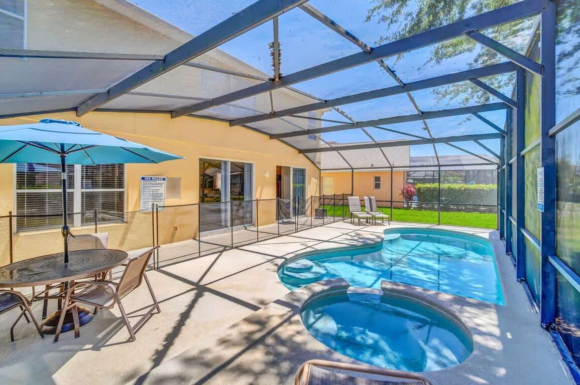 Besides the bedrooms and bathrooms, this Orlando vacation rental has tons of other features to enjoy. You can do everyone’s laundry in your washer and dryer, get competitive in your game room with foosball or pool, or enjoy a movie night on the TVs in all the bedrooms. You’ve also got high-speed WiFi to keep you connected. When you head out back, you’ll also find your very own private pool and spa, which you can heat for $30 a day plus taxes for the duration of your vacation!