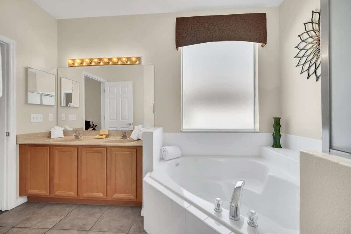 This home is located in an incredible gated community with tons of amenities for guests to enjoy only .25 miles away. You can head to the two heated swimming pools, walk around the nature trails, play on the tennis courts or the playground, or relax in the sauna. When you’re ready to explore Orlando, you’ll be just a short 5 mile drive from Walt Disney World and 16 mile drive to Universal Studios. Plus, there are lots of shops and restaurants in the area as well. It’s hard to find Orlando vacation rentals near Disney that are much more convenient and luxurious than this home!