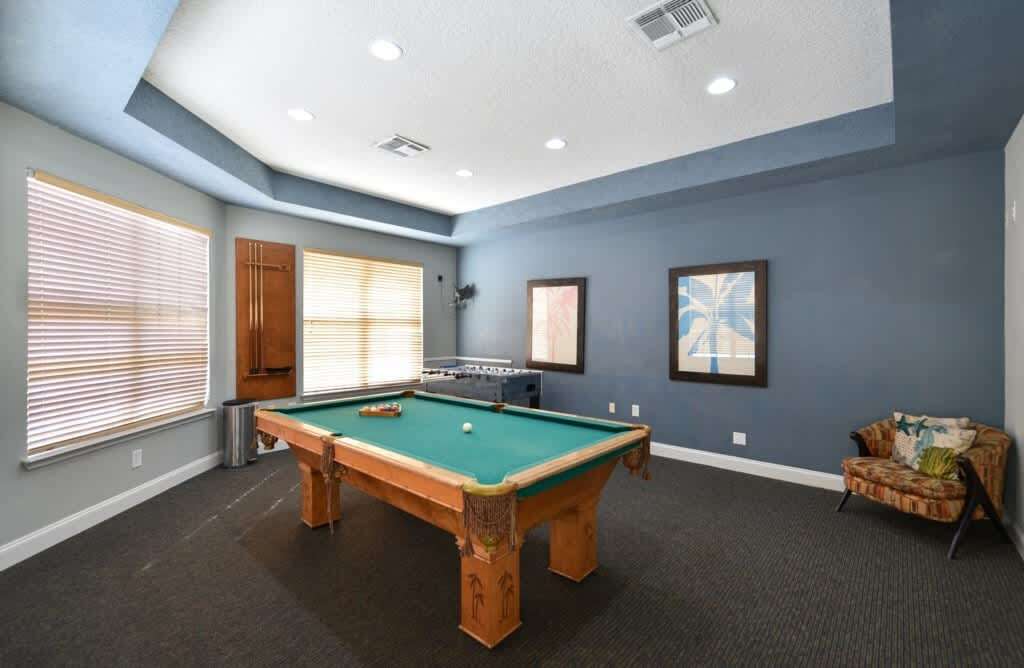 Elegant Clubhouse with Billiards/Video Game Room, Club Room/Bar Area With Flat Screen TV.