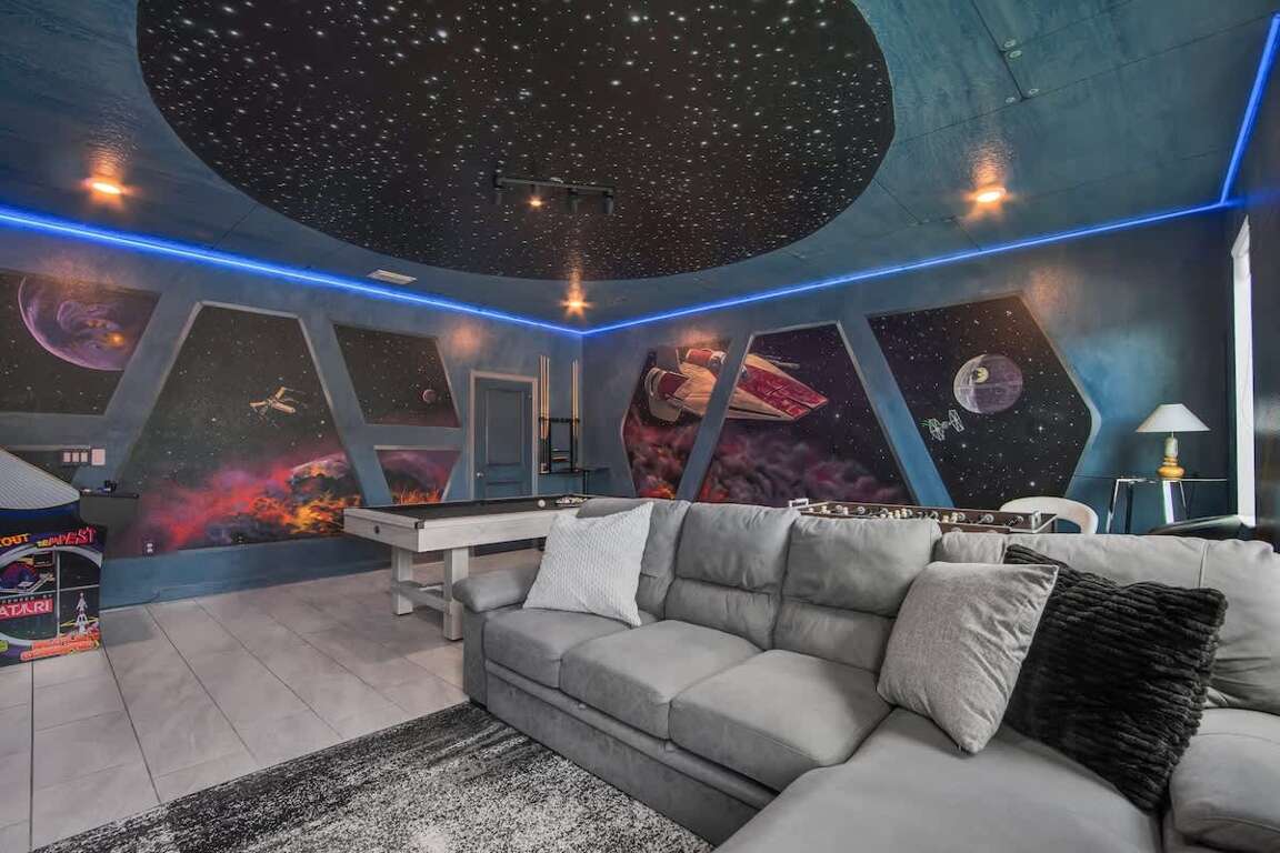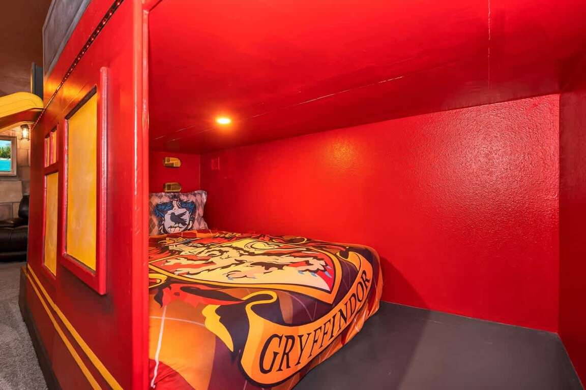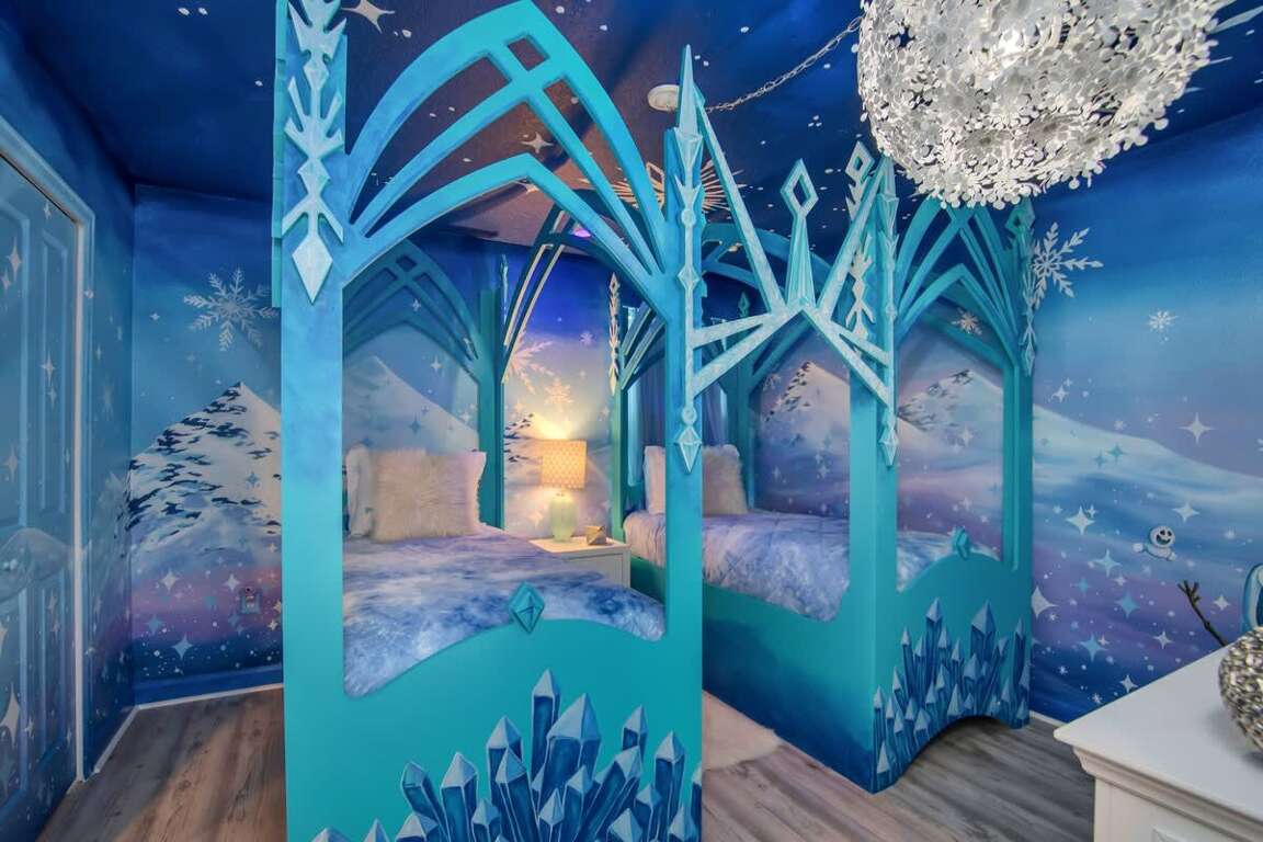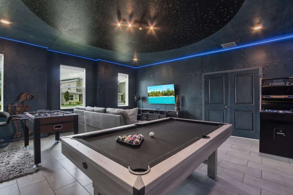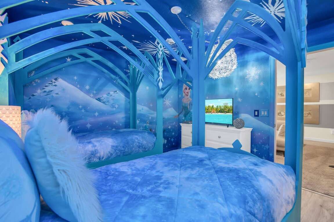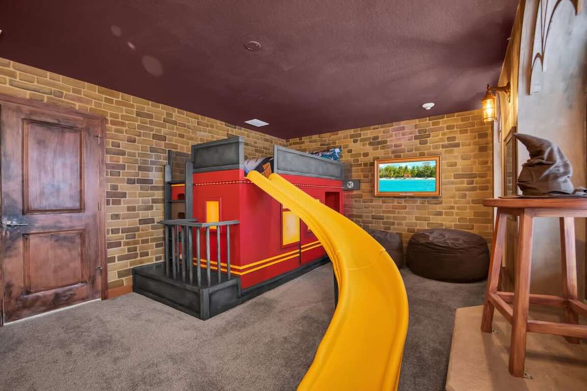 It’s hard to find a better property when it comes to luxurious Orlando vacation rentals than this. Inside, you’ll find a huge kitchen where you can cook your meals or enjoy a late-night snack. You’ve also got a spacious living room to enjoy a movie night with your family once you’re done at the parks for the day. Best of all, everyone can watch what they want, since each bedroom has its own TV. Or just head to your kids to their very own themed room featuring Harry Potter, Avengers and Frozen! Get competitive in the game room or head out back to enjoy your very own covered pool and the private family BBQ grill next to the pool (propane refill are covered by the guest). Pool heat can be added for $30 a day plus taxes for the duration of your vacation!