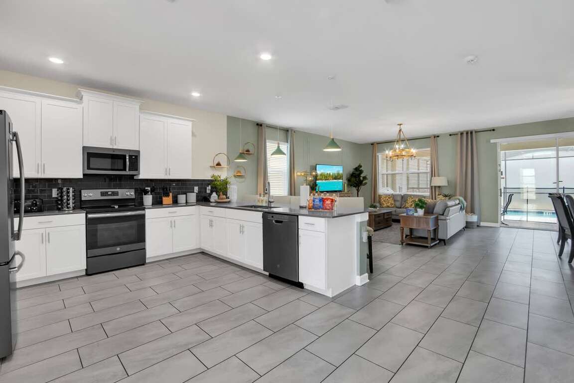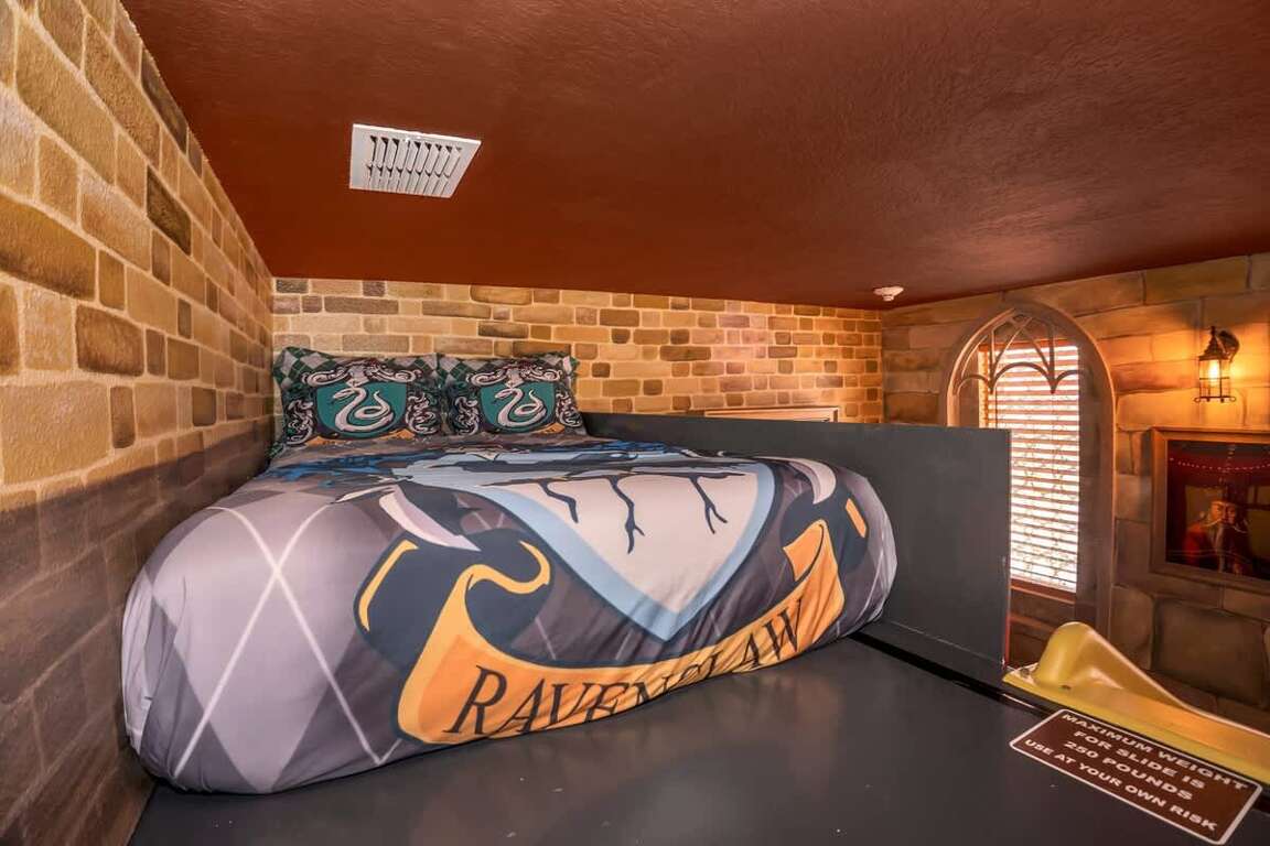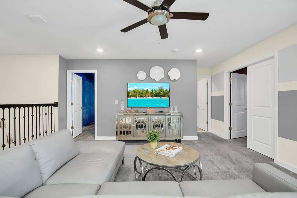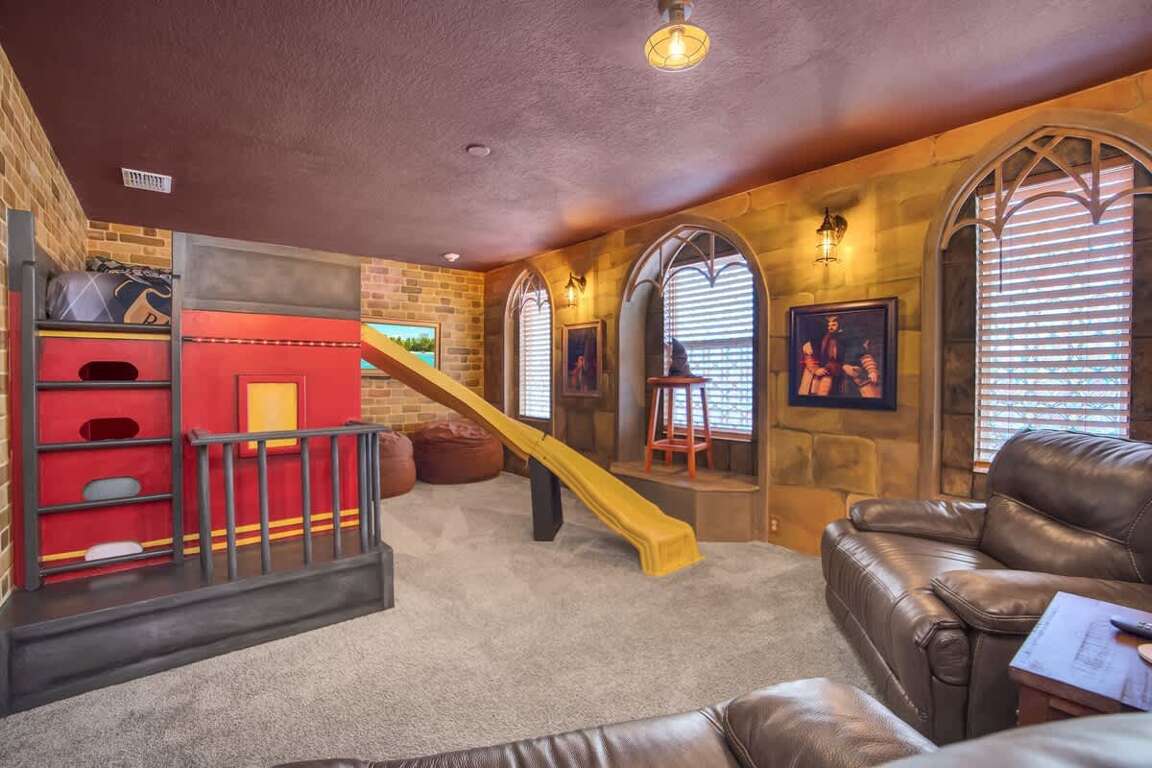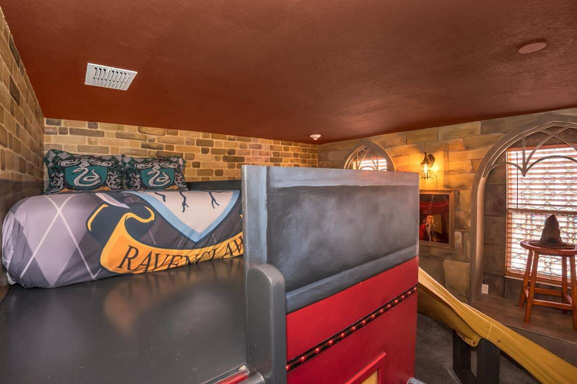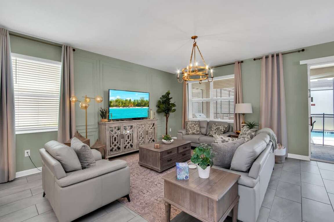 It’s hard to find a better property when it comes to luxurious Orlando vacation rentals than this. Inside, you’ll find a huge kitchen where you can cook your meals or enjoy a late-night snack. You’ve also got a spacious living room to enjoy a movie night with your family once you’re done at the parks for the day. Best of all, everyone can watch what they want, since each bedroom has its own TV. Or just head to your kids to their very own themed room featuring Harry Potter, Avengers and Frozen! Get competitive in the game room or head out back to enjoy your very own covered pool and the private family BBQ grill next to the pool (propane refill are covered by the guest). Pool heat can be added for $30 a day plus taxes for the duration of your vacation!