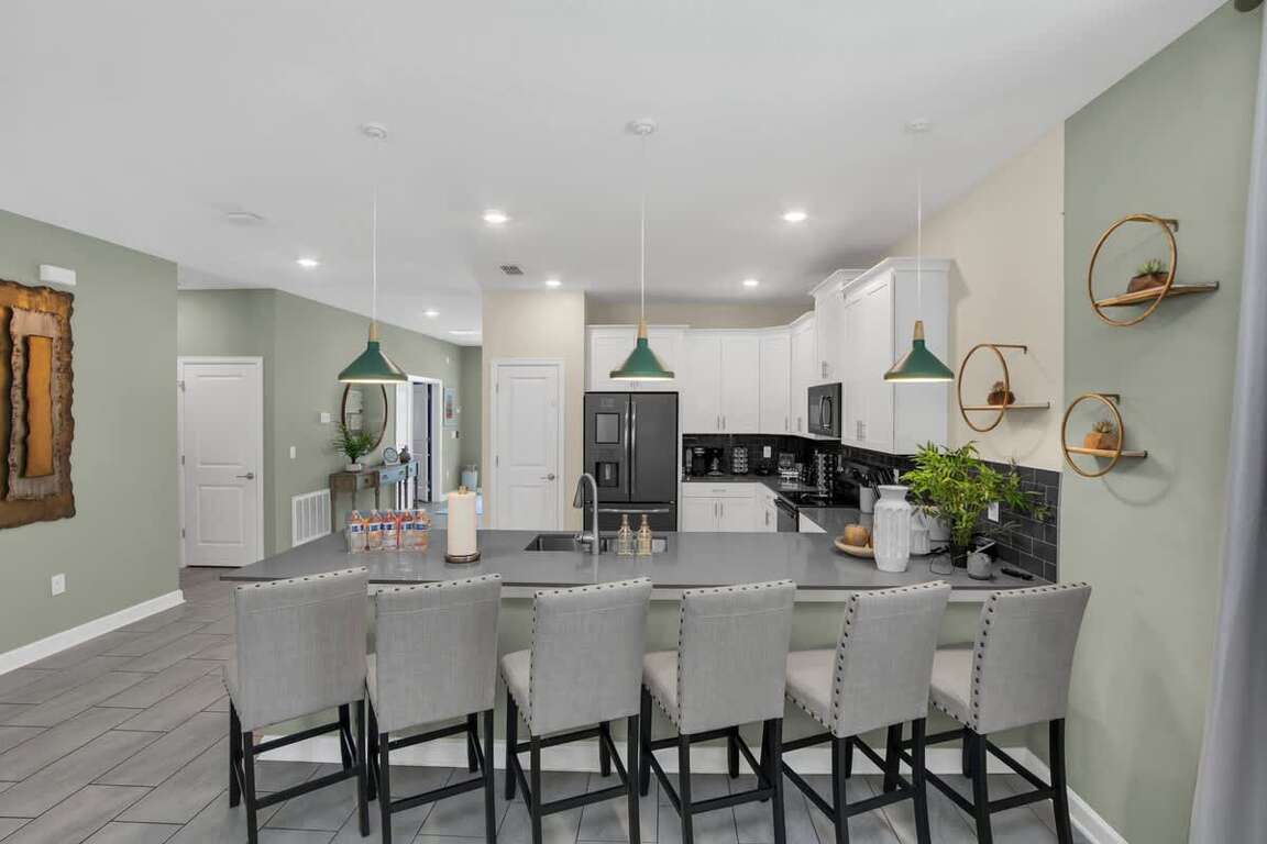 Luxury Orlando vacation rentals 8 miles to Disney World can be hard to come by, but this home has an incredible location near the Walt Disney World parks. It’s also just a short drive away from other Orlando attractions like SeaWorld 9.3 miles away, Legoland 37 miles away, and Universal Studios 11 miles away. You can also find tons of shopping opportunities, mouthwatering restaurants, and golf courses just a few minutes away. If you’re bringing a huge group or multiple families on your trip, this is the home for you!