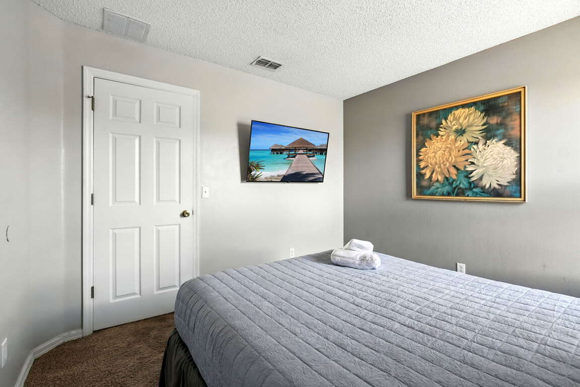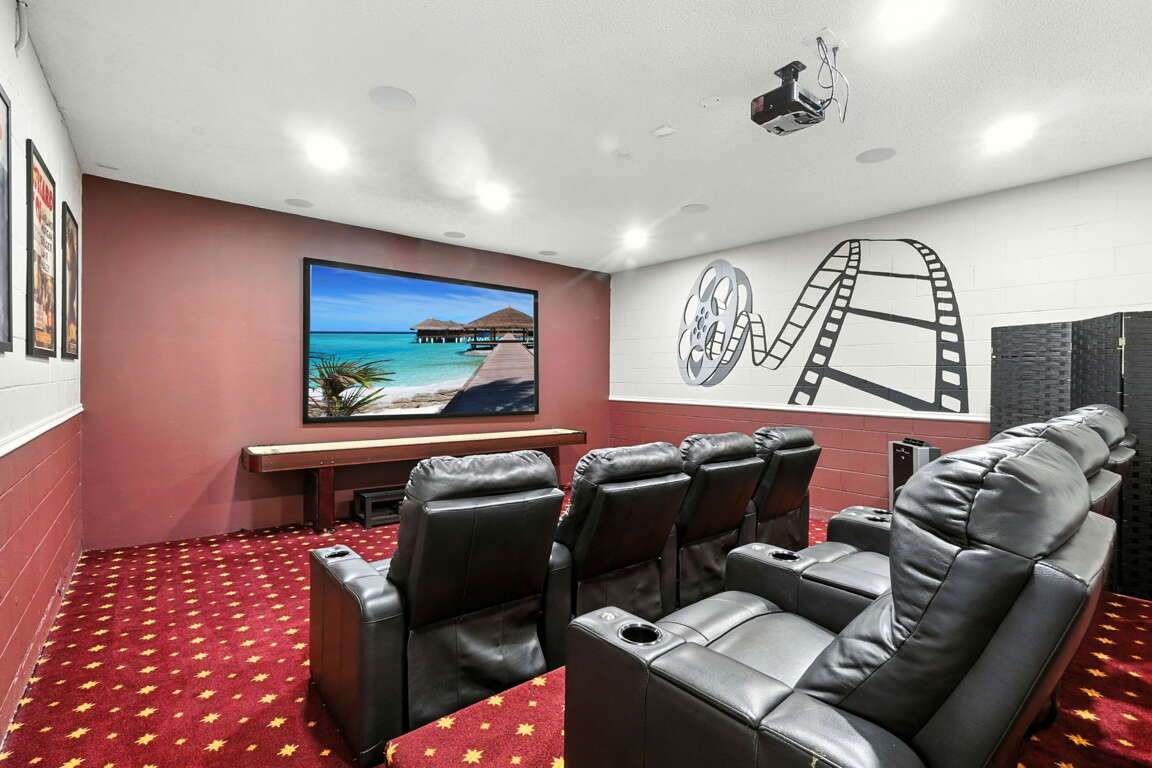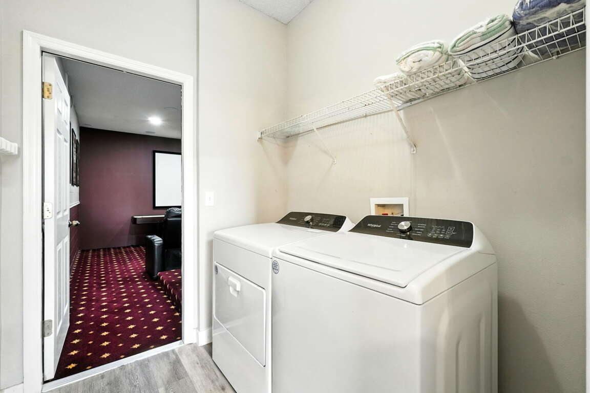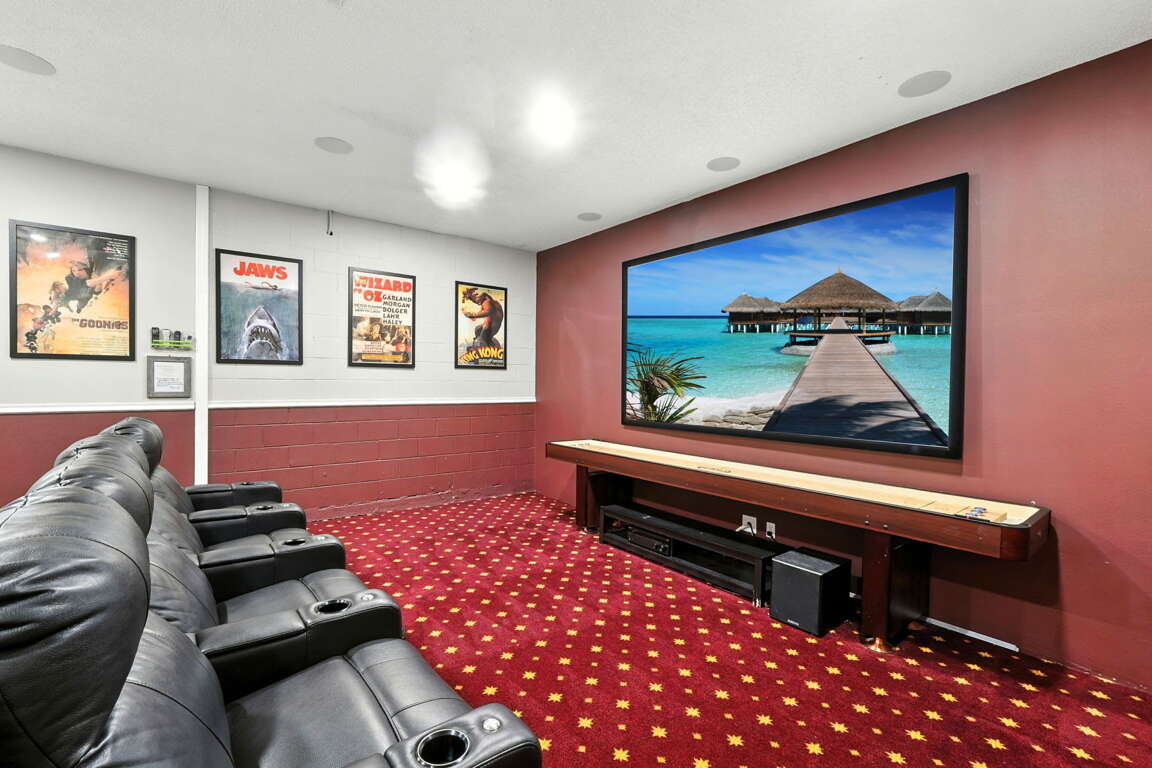 This vacation home has a wide range of amenities for you and your family to enjoy. You can cook up a meal in the full kitchen and enjoy it at the eat-in bar. Catch a movie or relax in the living room. There is a newly remodeled Theater room with a shuffleboard. Your family is welcome to bring your docking station and enjoy playing enjoy games on the big screen. When you want to enjoy the sunshine, you can head out back to your pool, which is located under a convenient cover and faces the lake for an incredible view. You’ll also have access to free WiFi and free parking. The resort charges $25 per each car to get into the resort.