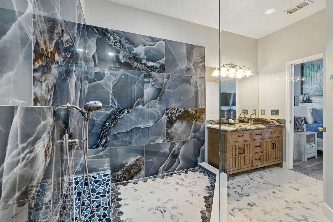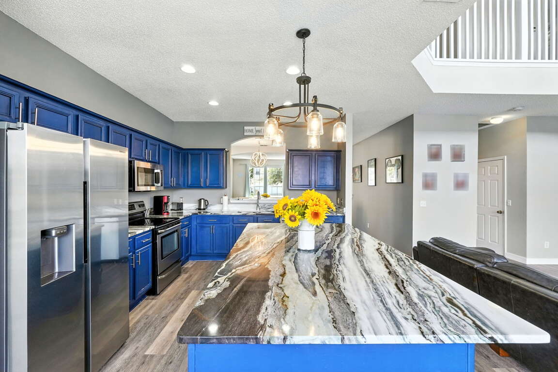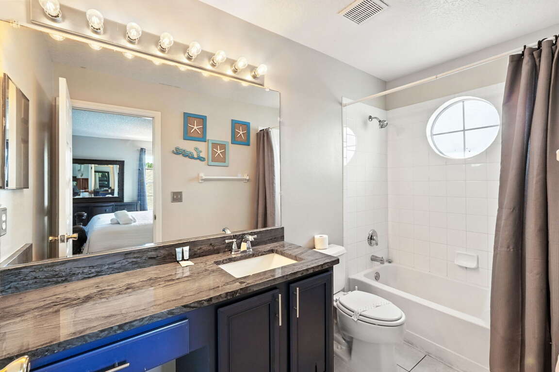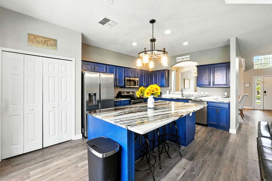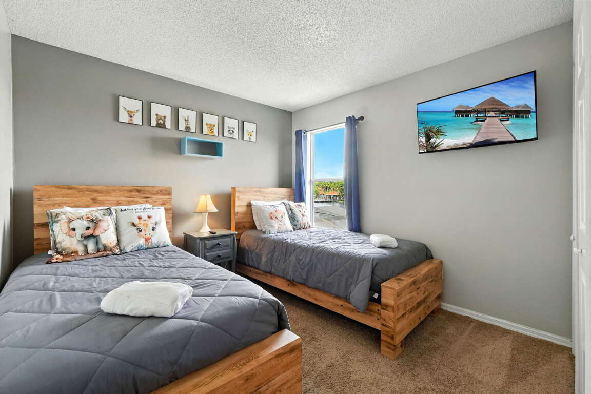 This vacation home has a wide range of amenities for you and your family to enjoy. You can cook up a meal in the full kitchen and enjoy it at the eat-in bar. Catch a movie or relax in the living room. There is a newly remodeled Theater room with a shuffleboard. Your family is welcome to bring your docking station and enjoy playing enjoy games on the big screen. When you want to enjoy the sunshine, you can head out back to your pool, which is located under a convenient cover and faces the lake for an incredible view. You’ll also have access to free WiFi and free parking. The resort charges $25 per each car to get into the resort.
