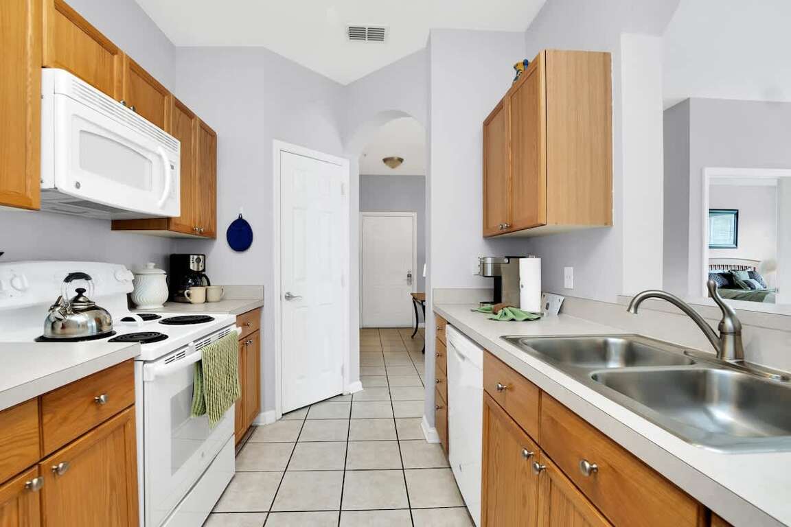 This 3-bedroom Orlando vacation rental offers everything you need for a truly unforgettable vacation. You'll have a fully furnished kitchen to help you cook and dine at home, and there is a spacious living room as well where you can relax together at the end of a long day enjoying the parks. There are multiple comfortable bedrooms as well as large bathrooms, so everyone has plenty of room. You'll also benefit from having your private washer and dryer as well as wireless high-speed Internet access.