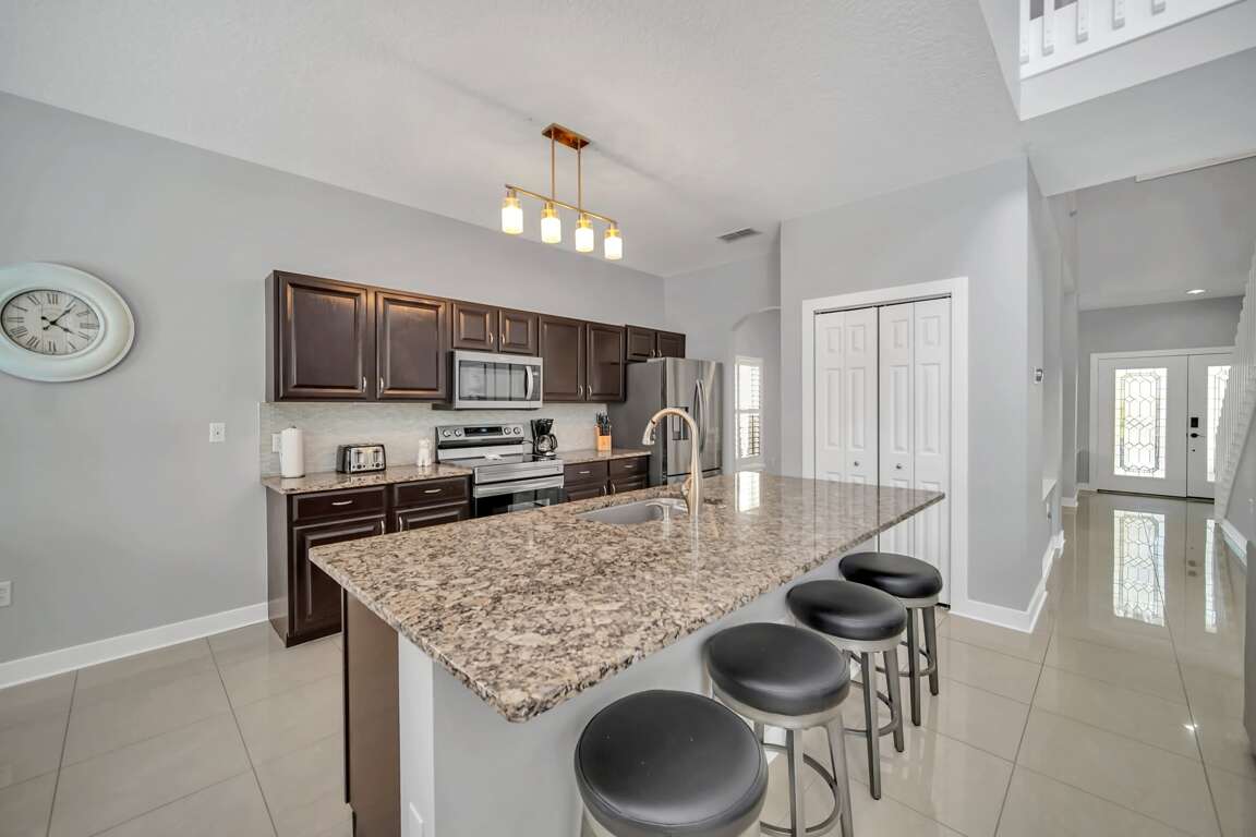 If you're looking for a truly magical place to stay on your next trip to Florida, consider the newly remodeled Legacy Park home 11 miles close to Disney World! This 5-bedroom Orlando vacation rental is equipped with 5 bedrooms as well to suit up to 12 guests. Throughout the home, you'll find beautiful Disney-themed decor and features that will remind you how close you are to the Happiest Place on Earth. Kids’ bedrooms are complete with touches of Mickey Mouse! We also offer grill rentals.
