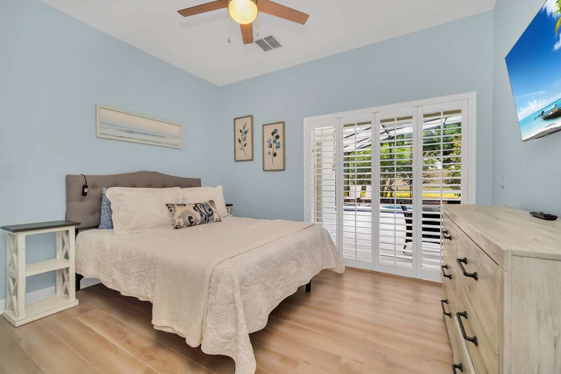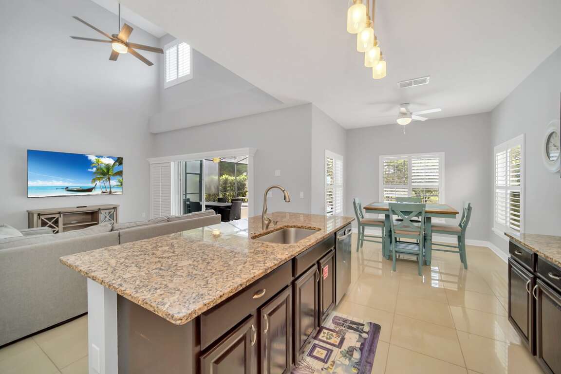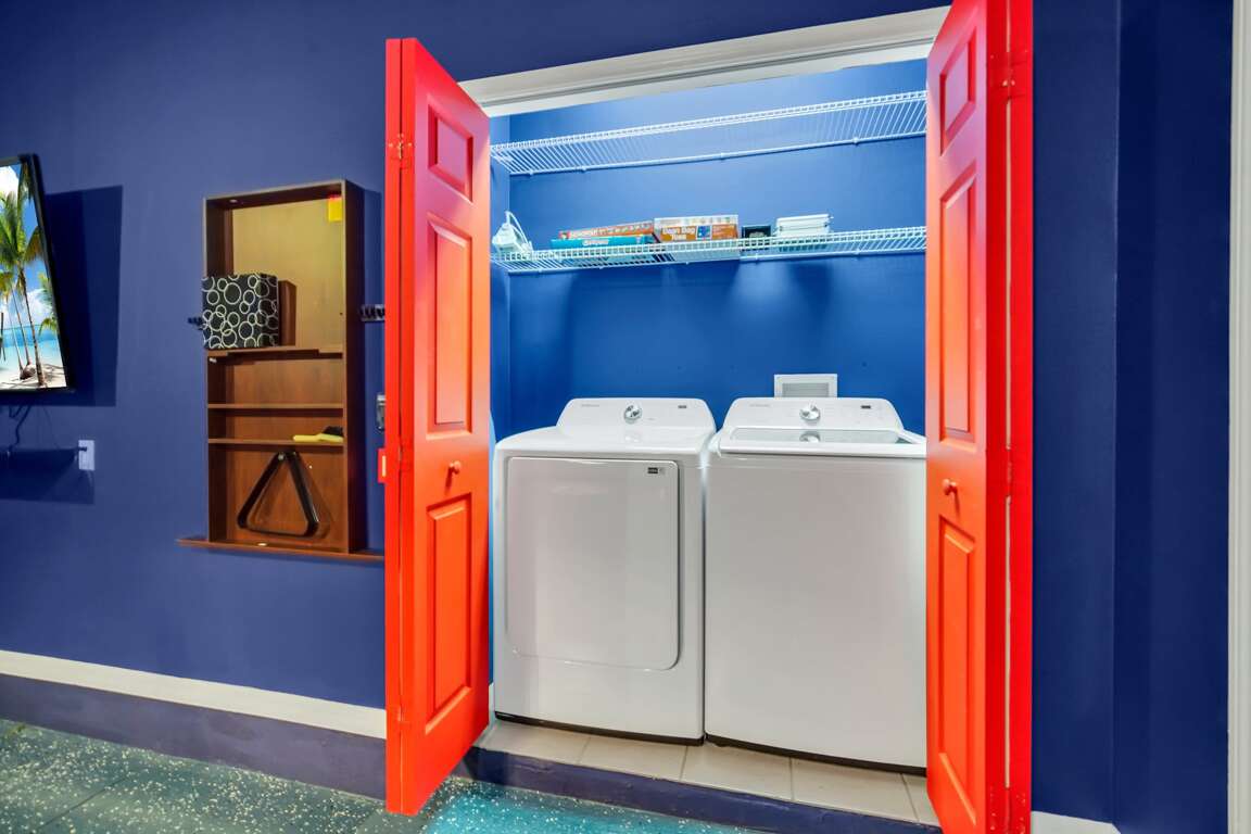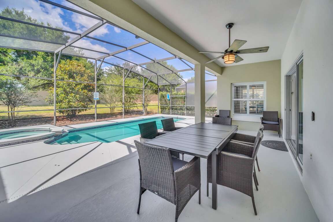 The rest of the house has luxurious features that the entire family can enjoy. Each bedroom has its TV, and the convenient family room has plenty of space for everyone. There is also a fully equipped kitchen where you can prepare your meals. Out back, you'll find a covered private pool that's perfect for cooling off on a hot day. This home is one of our most upscale and modern Orlando vacation rentals, featuring clean and crisp decor and furnishings throughout. Pool heat can be added for $30 a day plus taxes for the duration of your vacation!There is also an amazing brand-new game room for the whole family to enjoy.