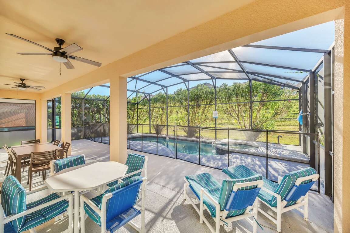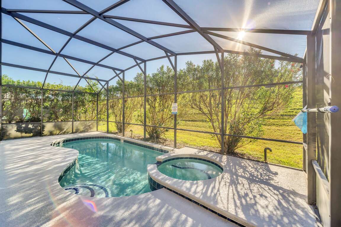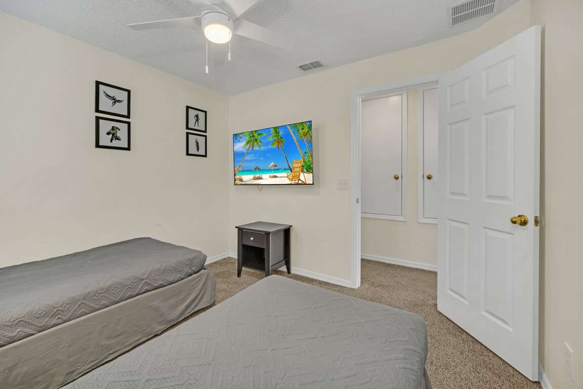 Each room is equipped with large Smart TVs, ensuring seamless entertainment at your fingertips. Whether you’re enjoying a movie in the spacious living room or relaxing in one of the cozy bedrooms, every corner of this home has been designed for comfort and convenience. Step outside to the private screened-in pool with a spa—your own personal retreat for relaxation after a day of exploring. Pool heating is available for $30 per day plus taxes for the duration of your stay. The home also includes a game room, complimentary WiFi at no extra cost, and amenities like a washer, dryer, iron, and ironing board for a stress-free experience.
