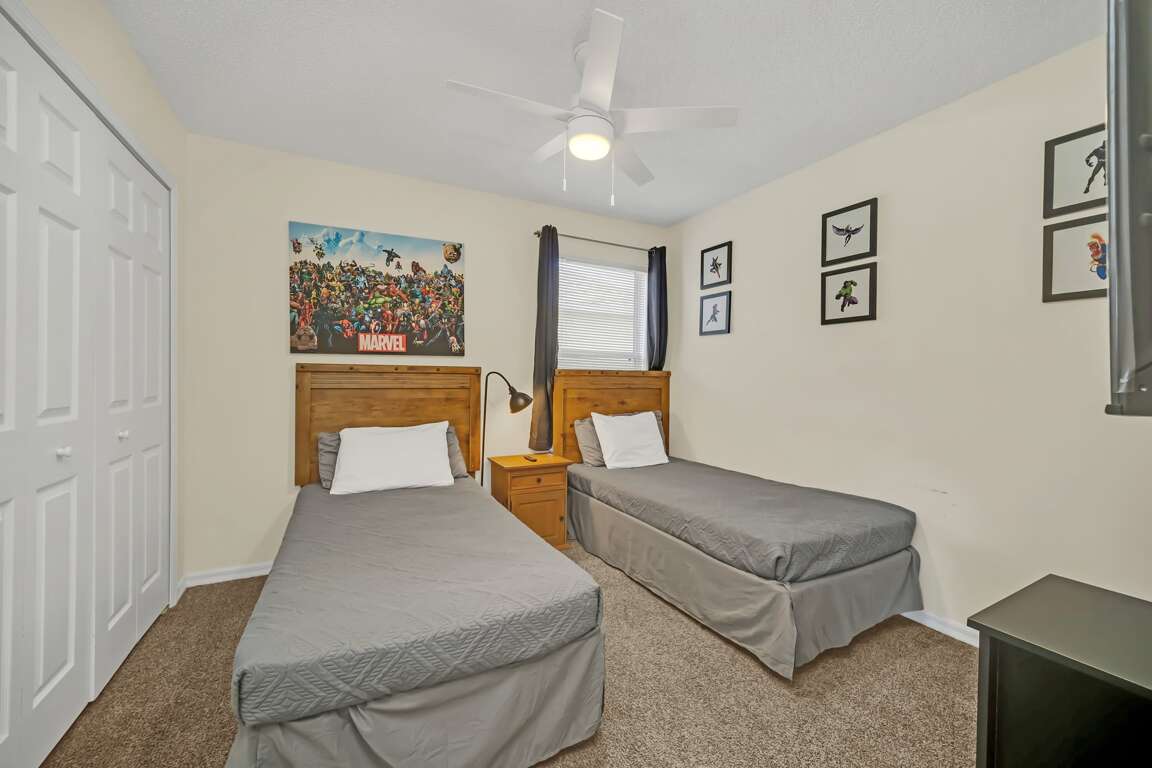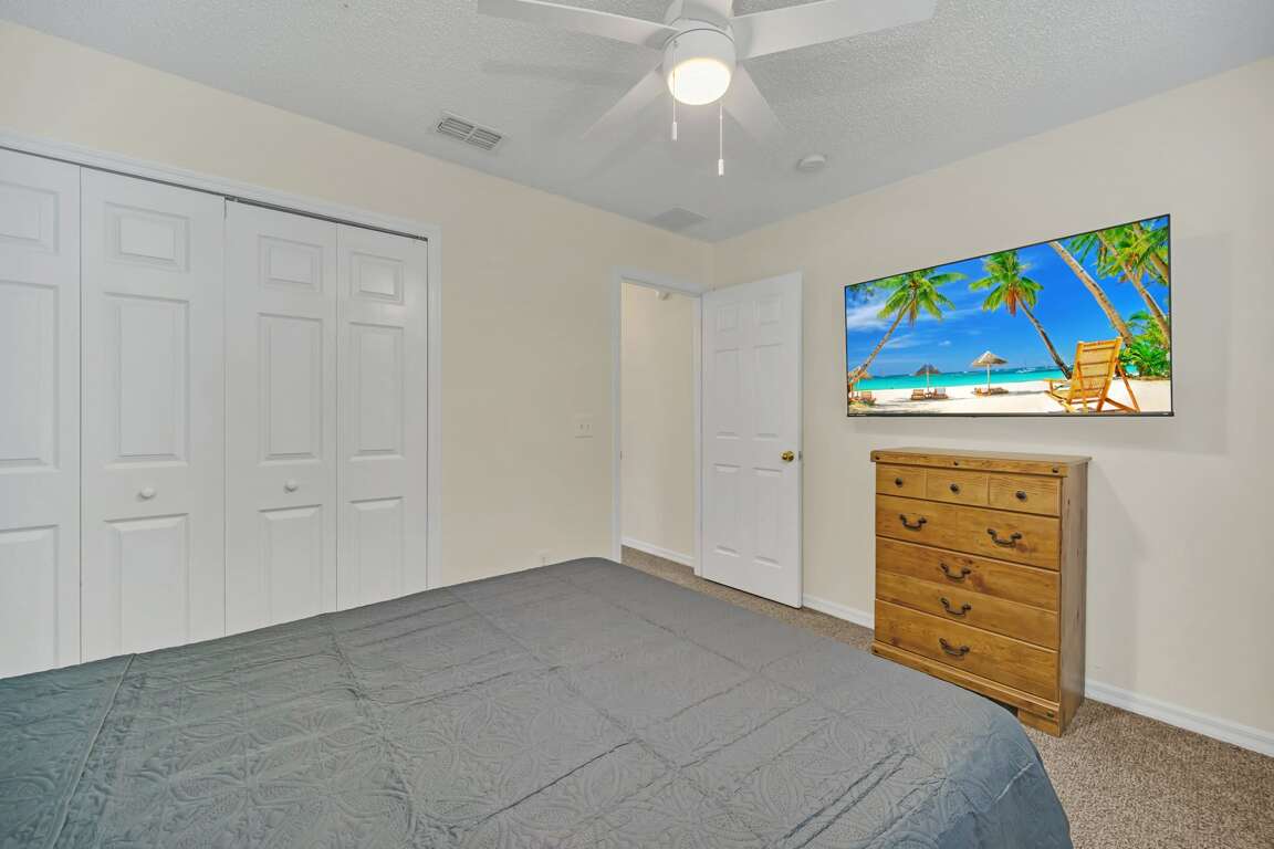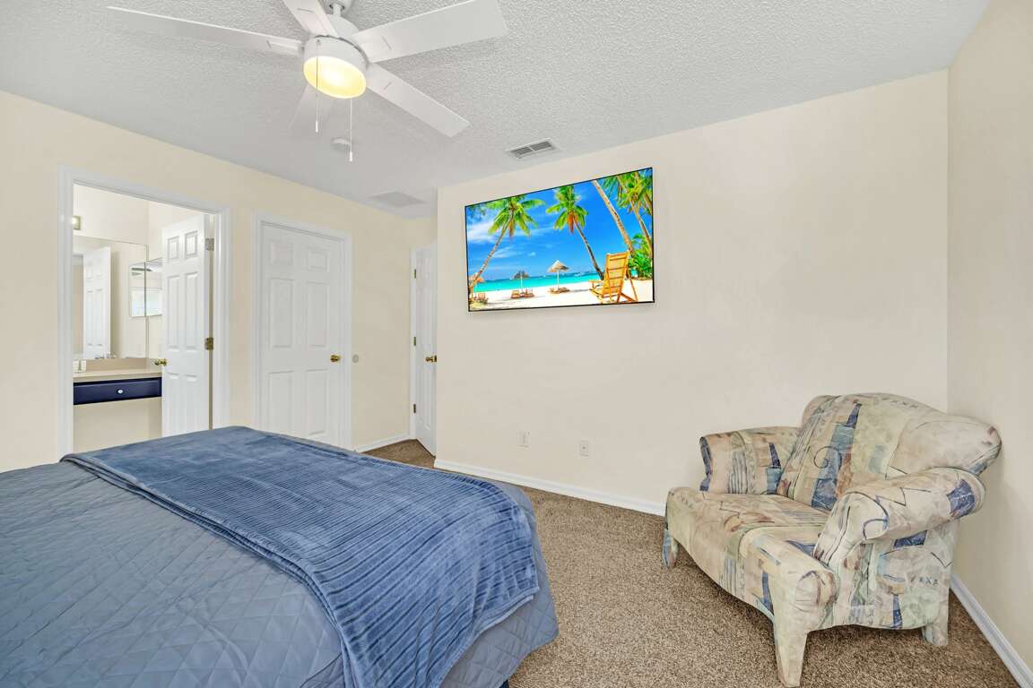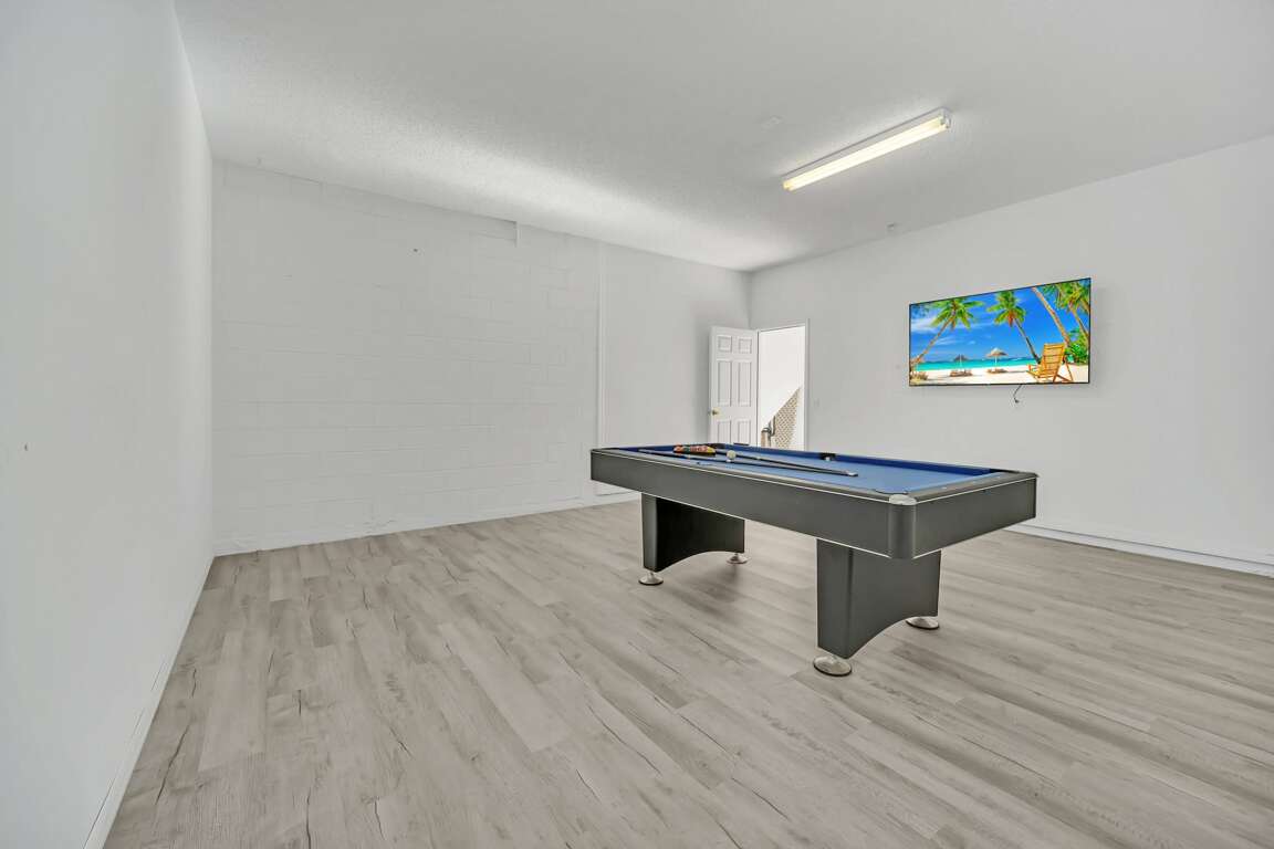 Each room is equipped with large Smart TVs, ensuring seamless entertainment at your fingertips. Whether you’re enjoying a movie in the spacious living room or relaxing in one of the cozy bedrooms, every corner of this home has been designed for comfort and convenience. Step outside to the private screened-in pool with a spa—your own personal retreat for relaxation after a day of exploring. Pool heating is available for $30 per day plus taxes for the duration of your stay. The home also includes a game room, complimentary WiFi at no extra cost, and amenities like a washer, dryer, iron, and ironing board for a stress-free experience.