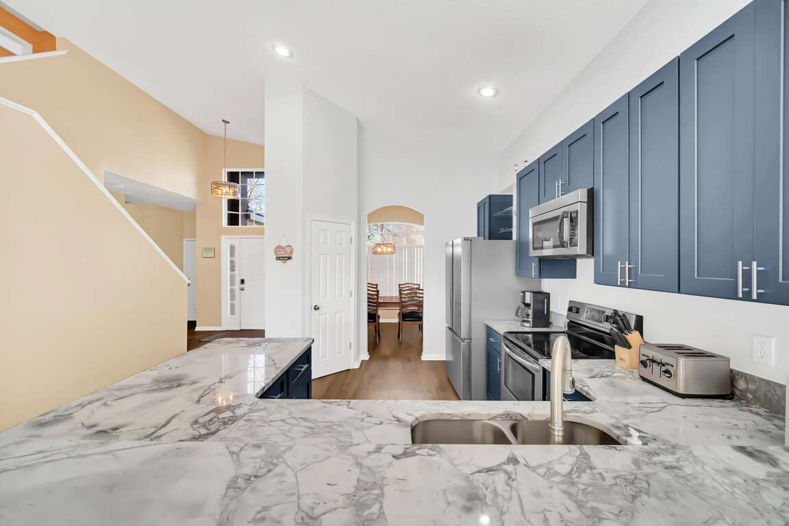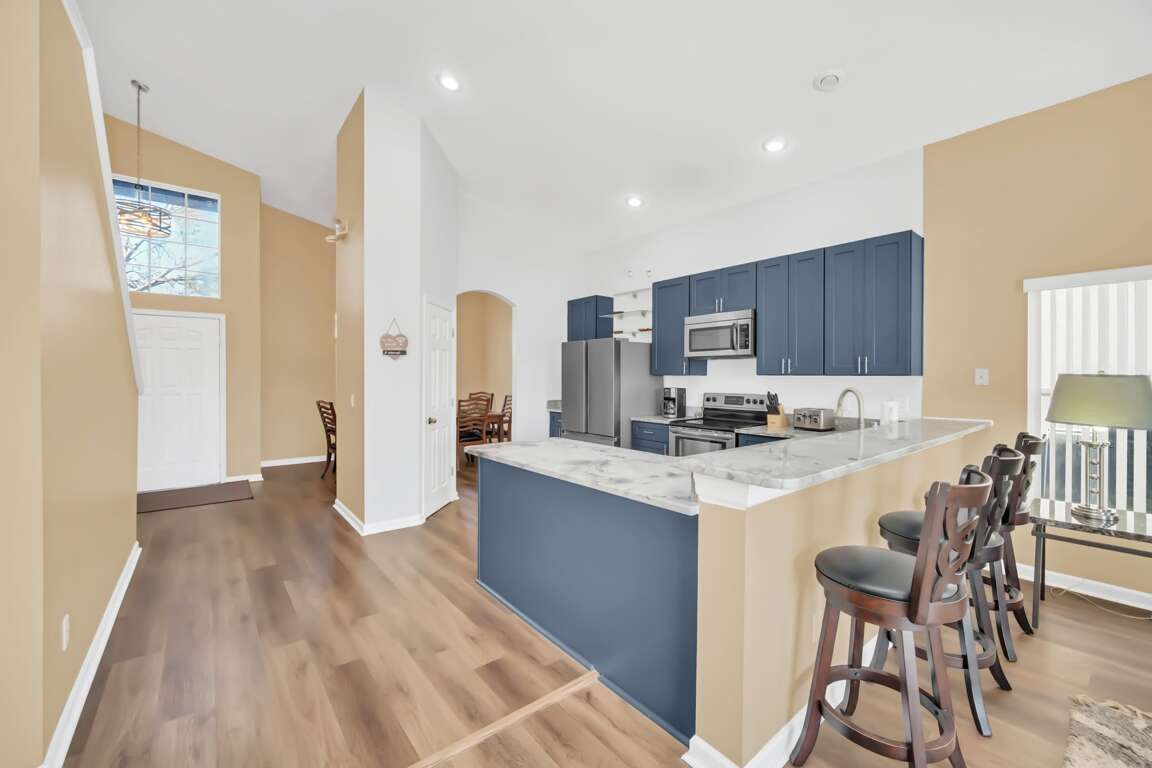 The well-appointed kitchen is fully equipped with everything needed to prepare home-cooked meals, from morning coffee to family dinners. With ample counter space, modern appliances, and all the essentials, cooking here is effortless and enjoyable. The open-concept design seamlessly connects the kitchen to the dining and living areas, creating the perfect environment for gathering, dining, and unwinding together.