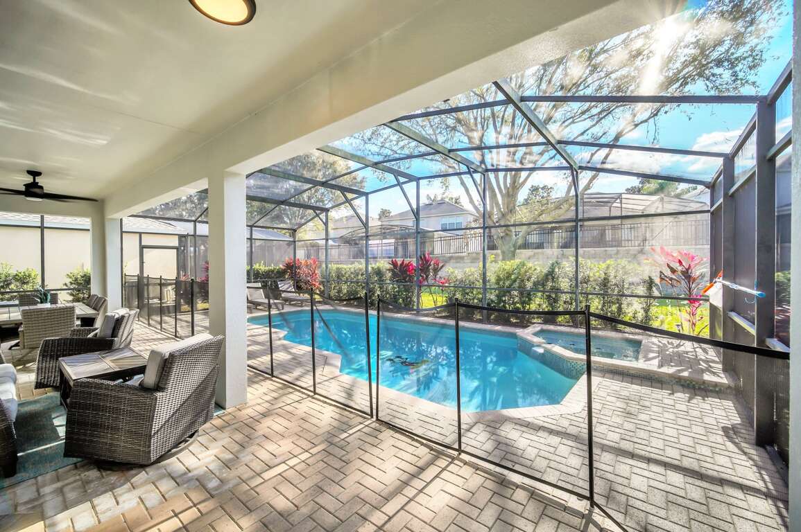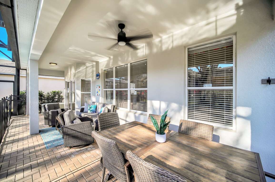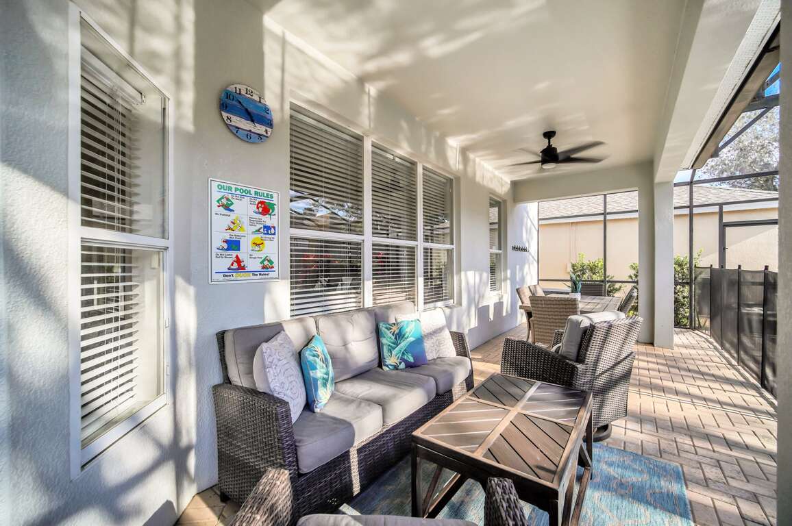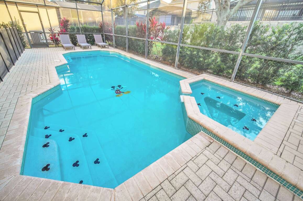 The private, south-facing pool was newly resurfaced in 2021 and features Disney-themed accents, adding a touch of magic to your stay. The covered lanai is furnished with a comfortable outdoor sofa and dining set, providing the perfect space to unwind and enjoy the Florida sunshine. We also offer grill rentals for barbecue nights!