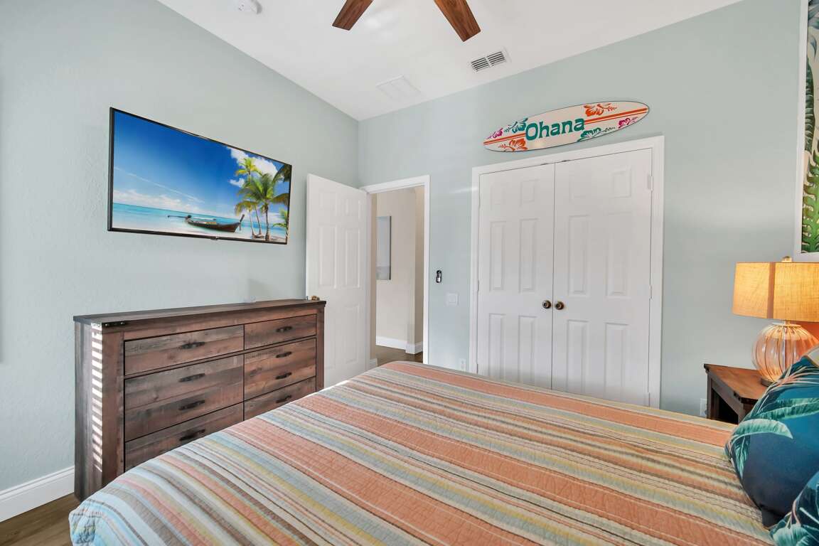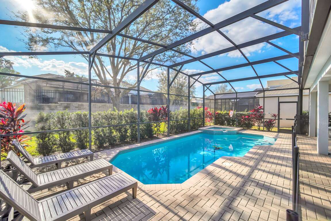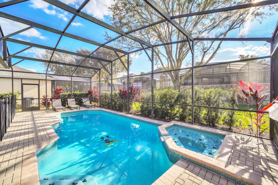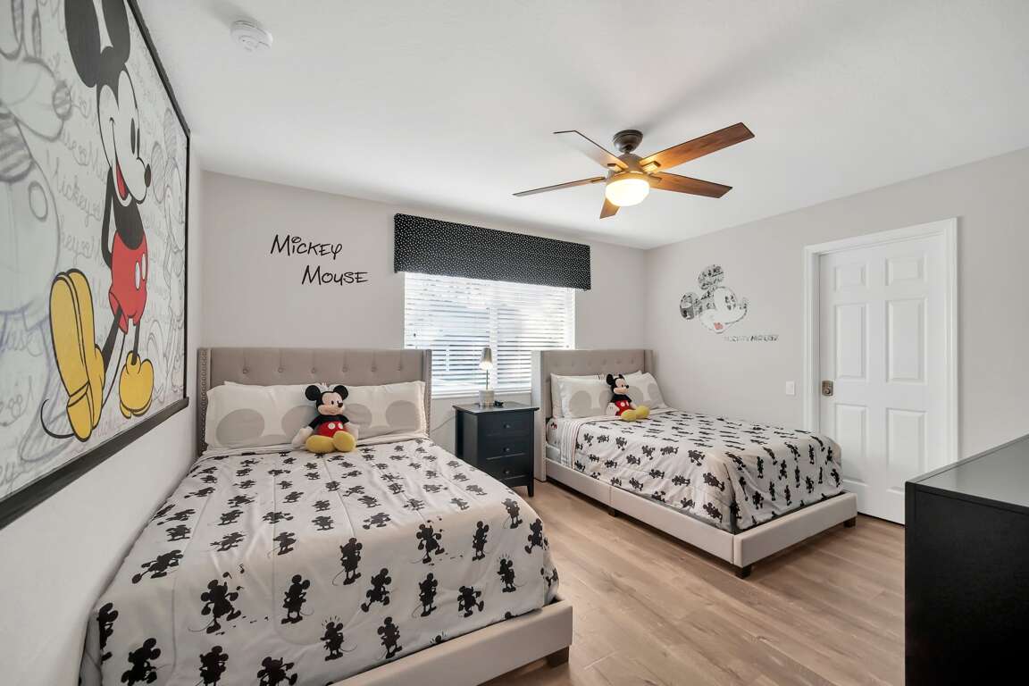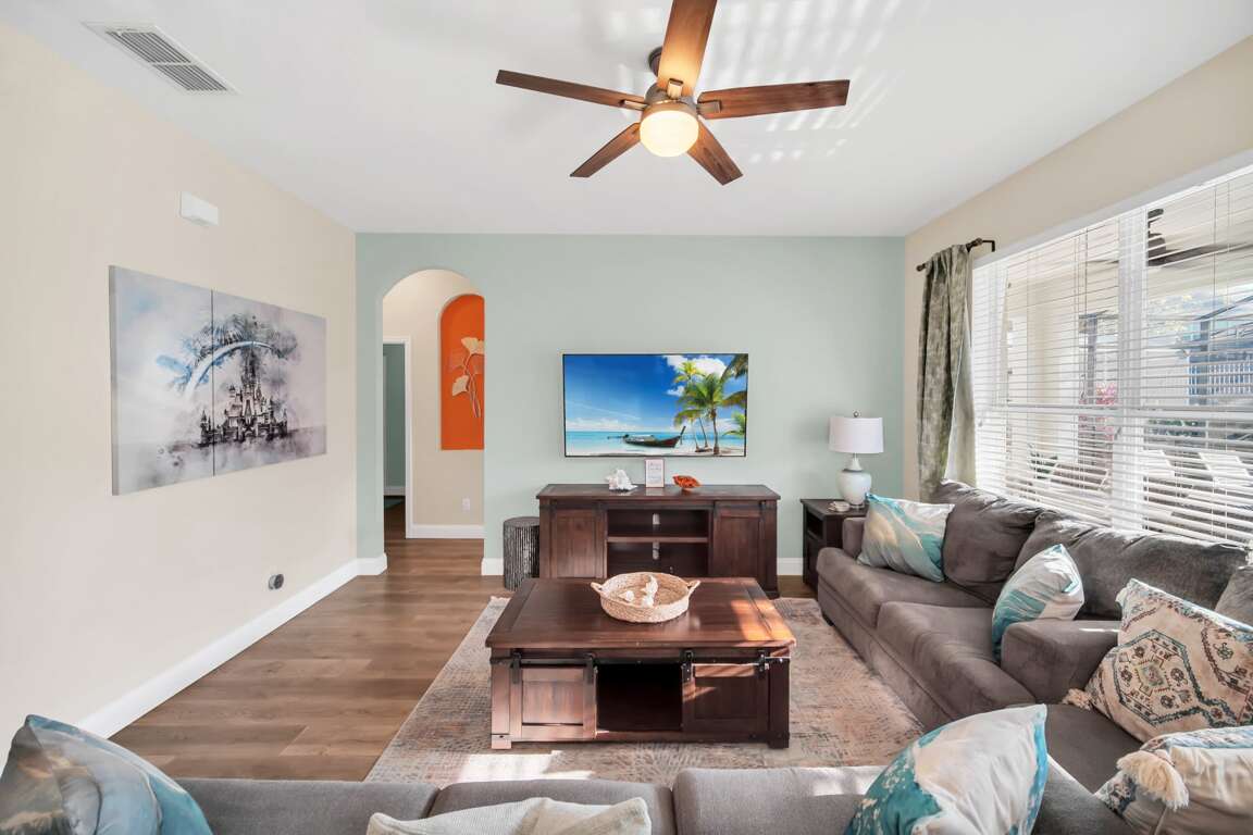 The private, south-facing pool was newly resurfaced in 2021 and features Disney-themed accents, adding a touch of magic to your stay. The covered lanai is furnished with a comfortable outdoor sofa and dining set, providing the perfect space to unwind and enjoy the Florida sunshine. We also offer grill rentals for barbecue nights!