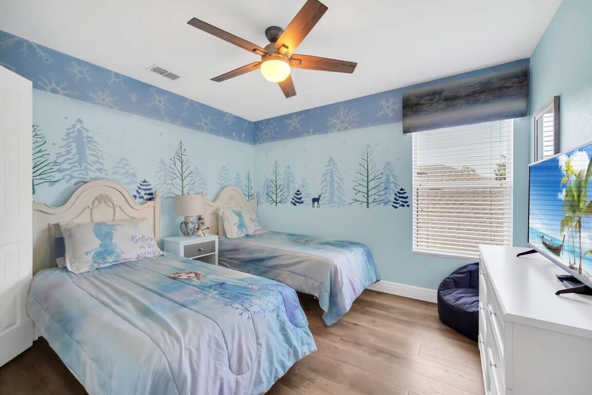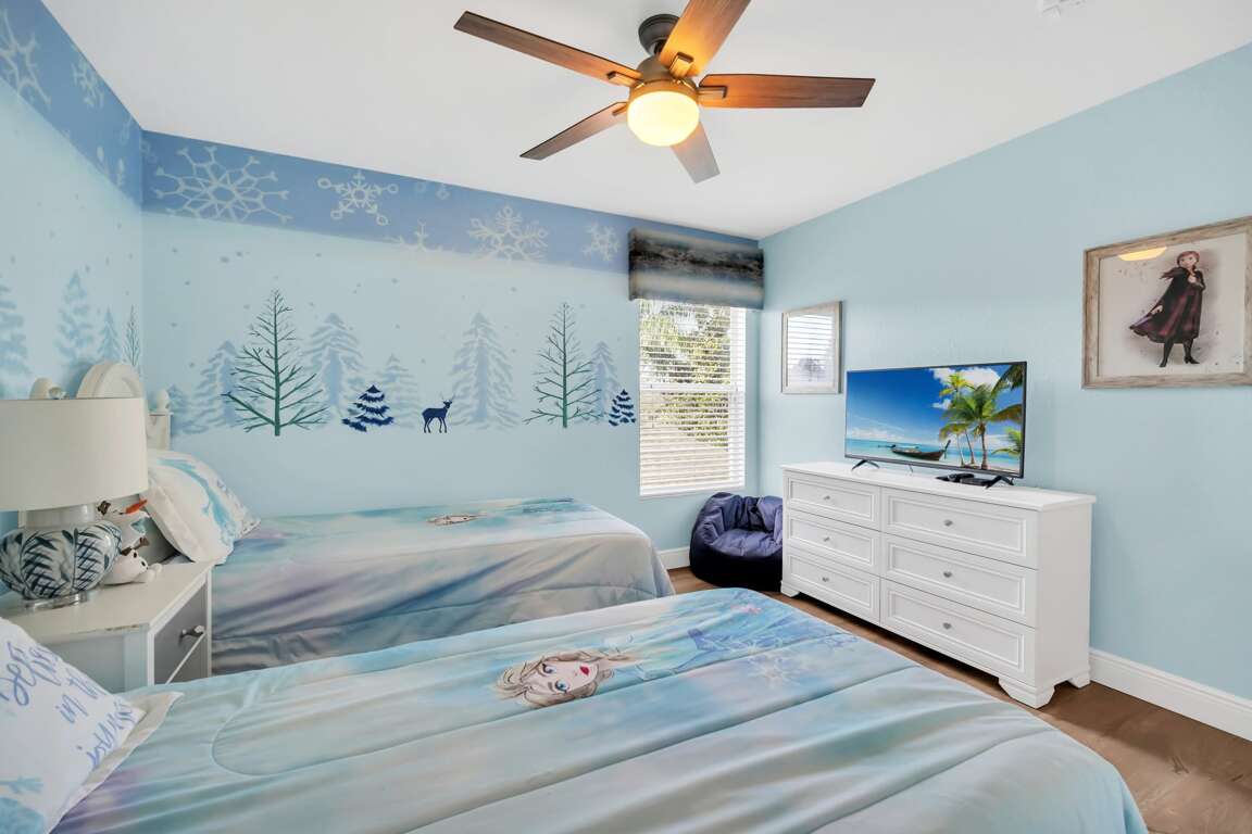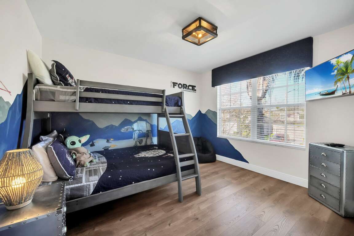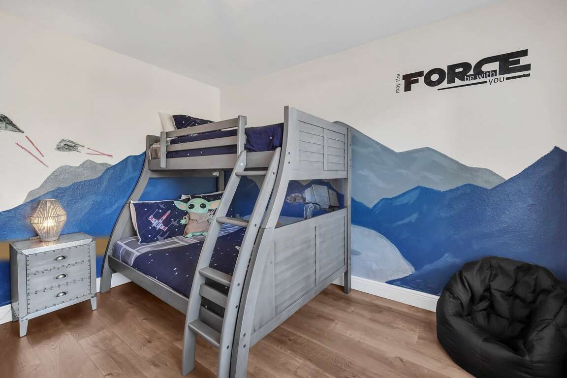 This home offers six beautifully decorated bedrooms. One bedroom is conveniently located on the ground floor, while five additional bedrooms, including two ensuites, are on the second floor. The themed kids' rooms create a fun and immersive experience for younger guests.