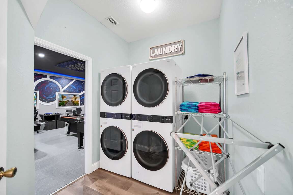 Recent upgrades include over $140,000 in renovations completed including new flooring, baseboards, and interior paint, new AC unit and all new furniture and mattresses in 2022. The laundry room is equipped with two stackable washers and two dryers for added convenience.