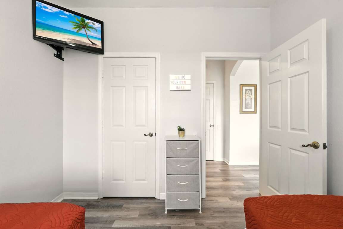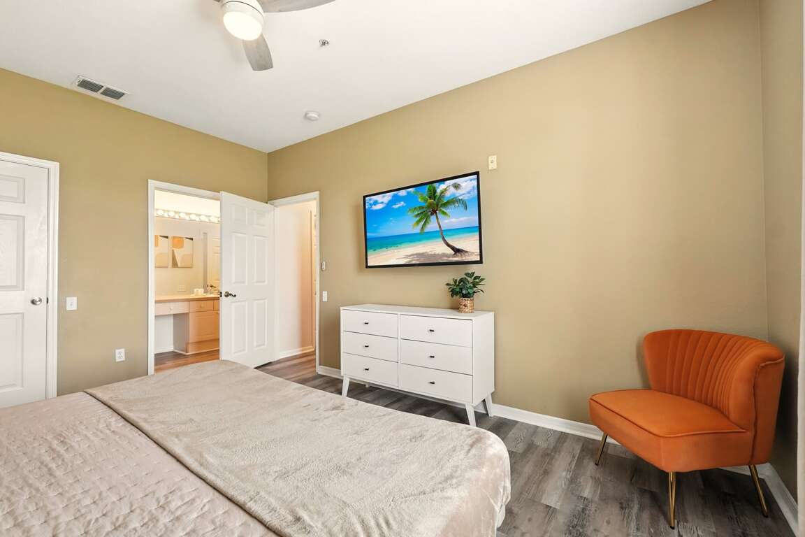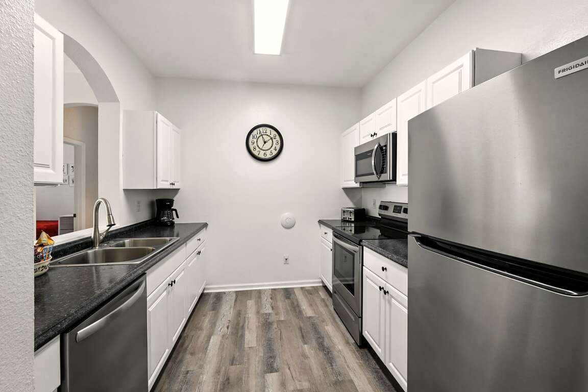 Amazing condo just minutes from Disney World Welcome to your perfect vacation getaway at Windsor Palms! This beautifully remodeled 3-bedroom, 2-bathroom condo offers modern comfort and style just steps from the clubhouse and resort amenities. With fresh upgrades throughout, two luxurious king bedrooms, and TVs in every room, this condo is designed for relaxation and convenience after exciting days in the Florida sun. Gated community and will need to provide drivers information for pass. There are no company marked vehicles allowed in the resort.