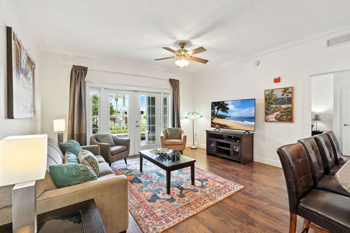 The bedrooms are designed with families in mind: a spacious master suite for parents to recharge, and two additional bedrooms that give the kids their own space to relax. With two bathrooms, mornings are easy, and the in-unit washer and dryer mean you can pack light and handle those inevitable pool towels and park clothes.