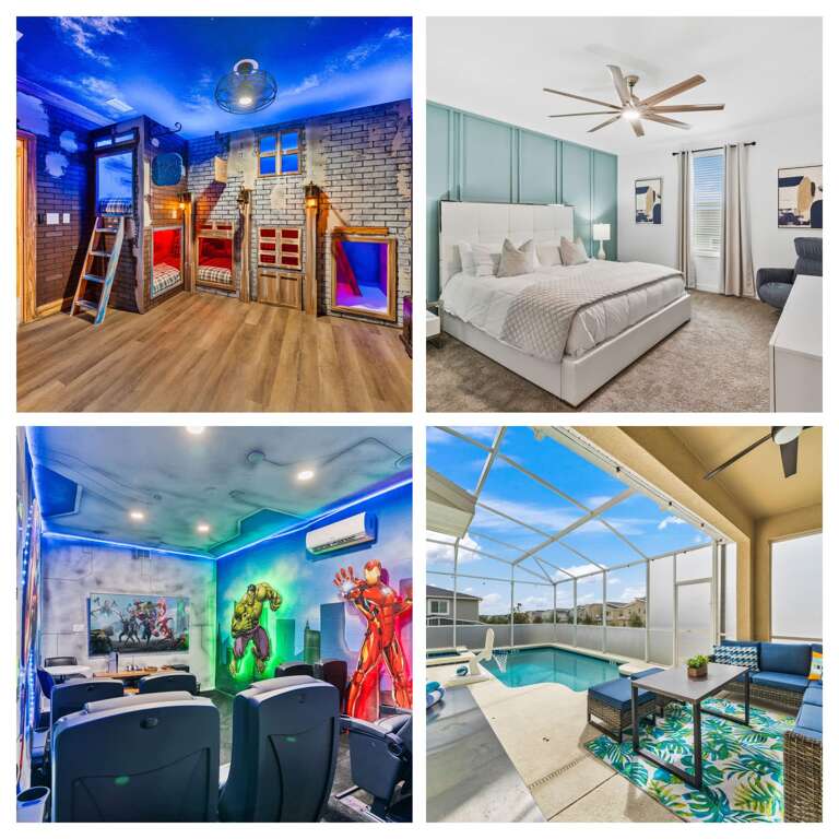 Family Fun Villa with Custom Bunk Room, Game Loft & Private Pool – Close to Disney From the moment you step inside, this Potter's Retreat feels like a home designed for gathering. The living room opens wide with a plush sectional, sunlight pouring through the windows, and a big-screen TV that invites everyone to settle in after a day of adventure. The kitchen sits at the heart of it all, fully equipped and ready for everything from early-morning coffee to family feasts around the dining table. The open floor plan allows everyone to gather and enjoy the family breakfast as everyone gets ready to hit the parks for the day. https://youtu.be/4ppENguLqE0 Champions Gate offers guests world class amenities, including multiple pools and water parks, a lazy river, basketball, soccer and playgrounds!