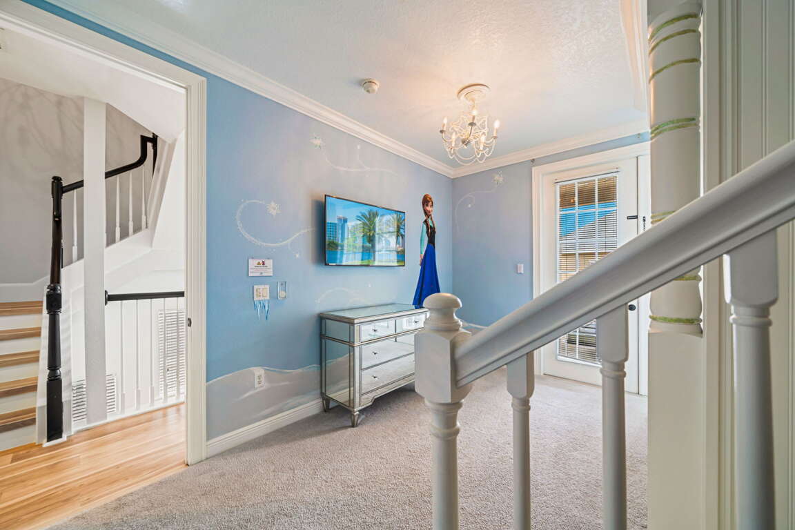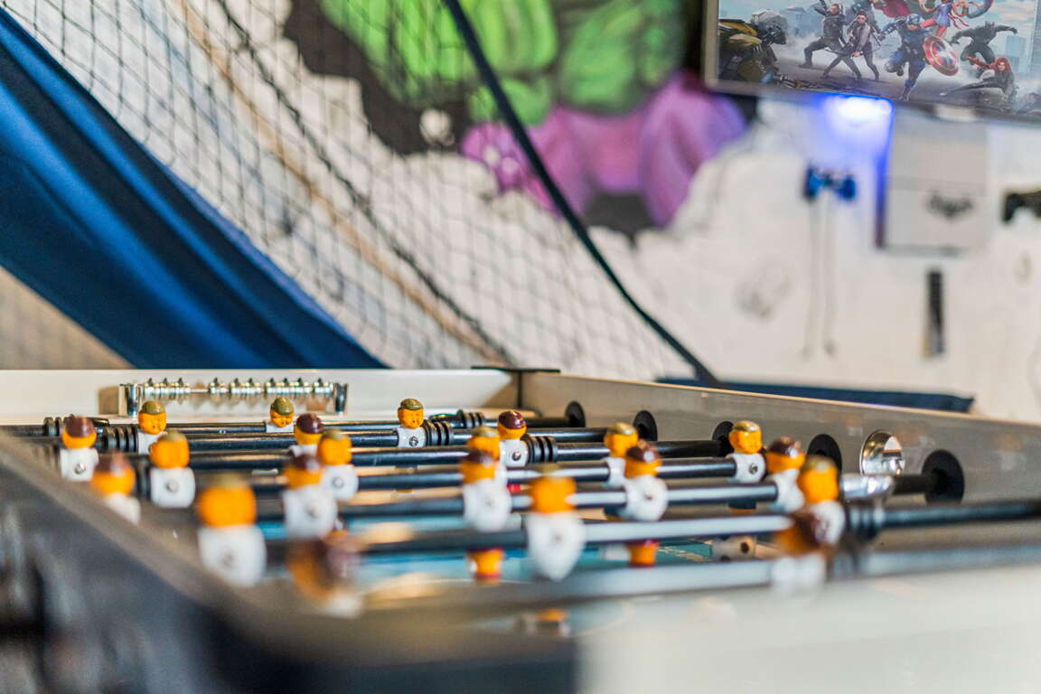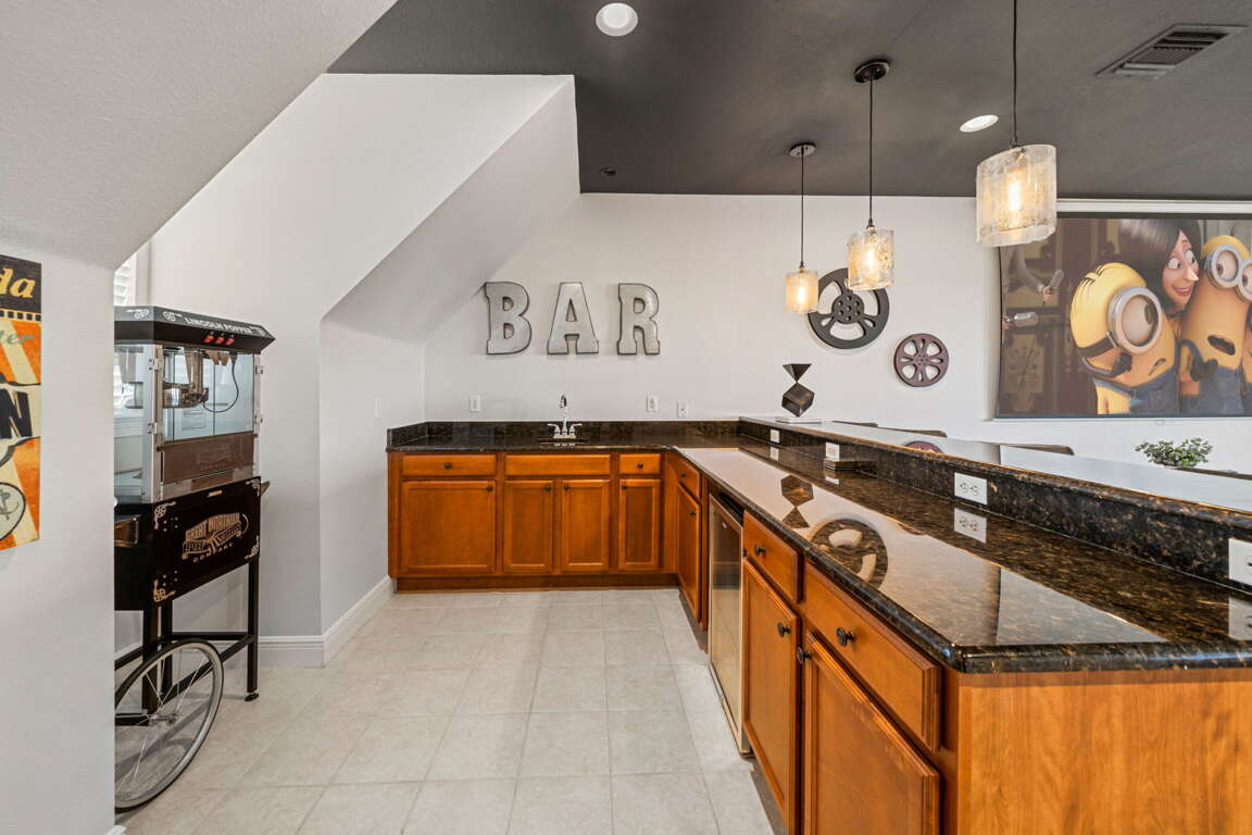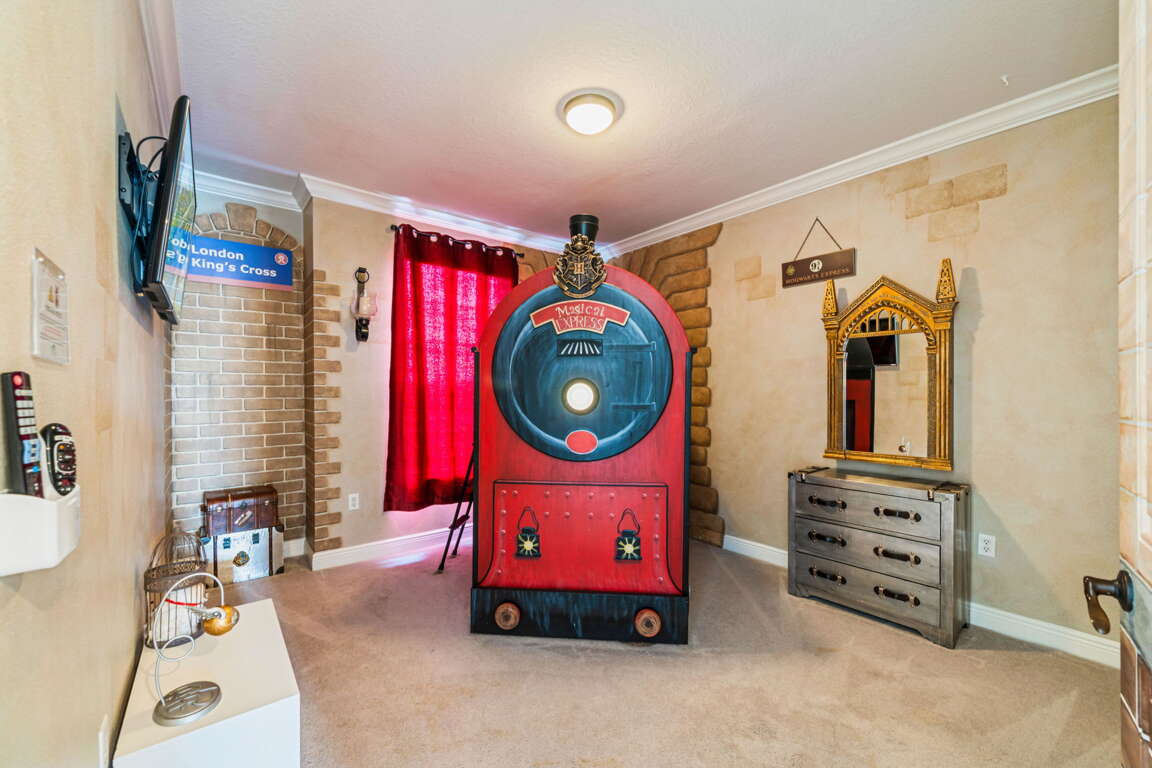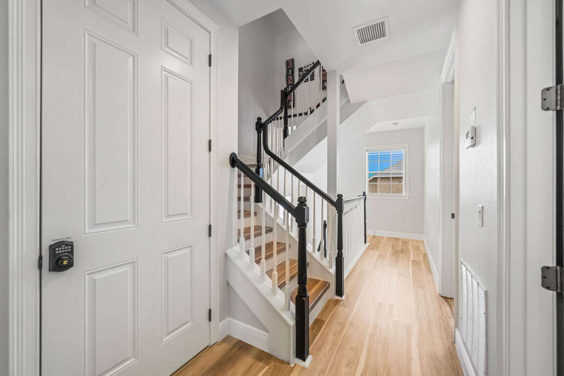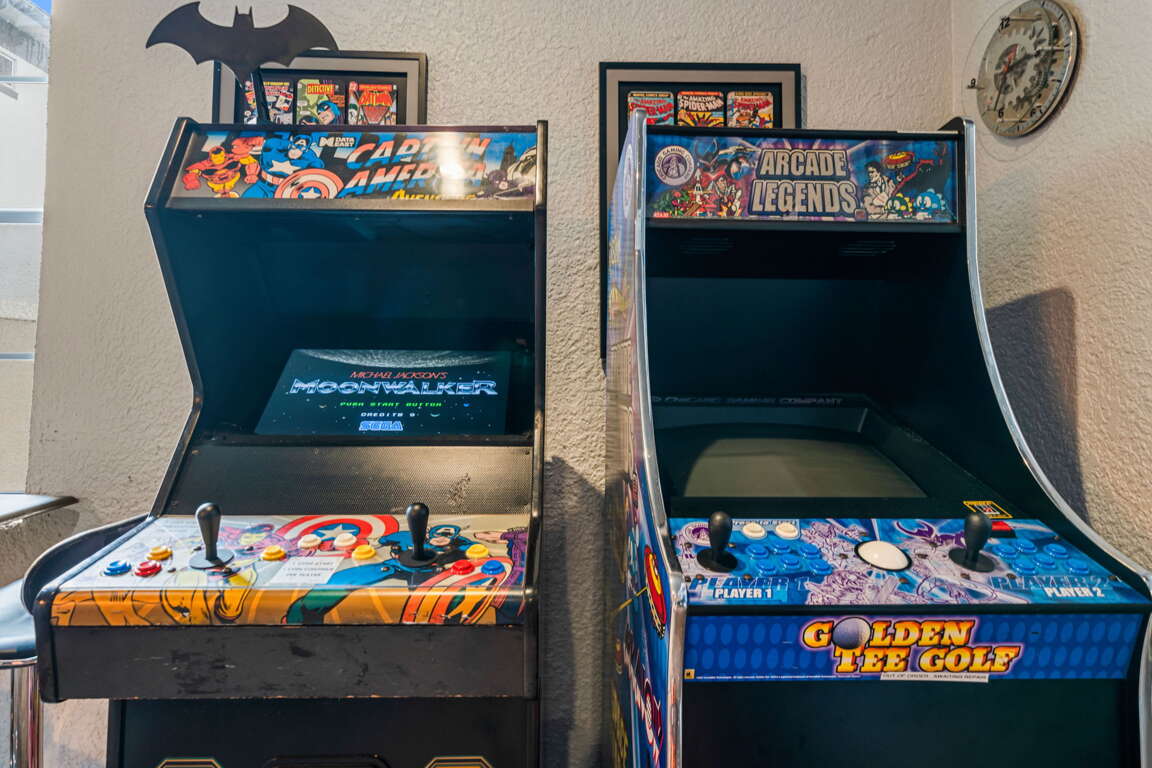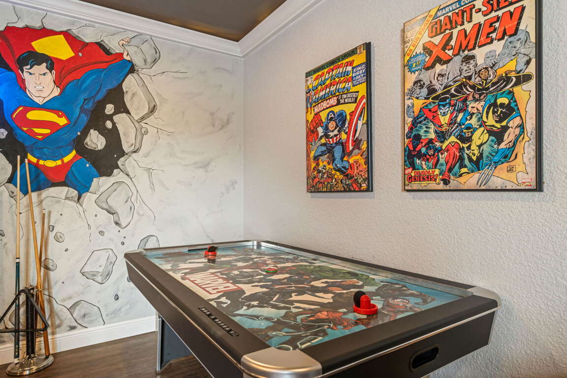 Entertainment comes naturally here. The vibrant game room is a hub of laughter and friendly competition, featuring a pool table, air hockey, Captain America and Legends arcade games, and a basketball hoop challenge that keeps everyone entertained late into the night. Upstairs, the third floor transforms into your own private cinema. Plush recliners, soft lighting, and a half bath set the scene for movie nights, while the balcony offers fresh air and starlit views once the credits roll.