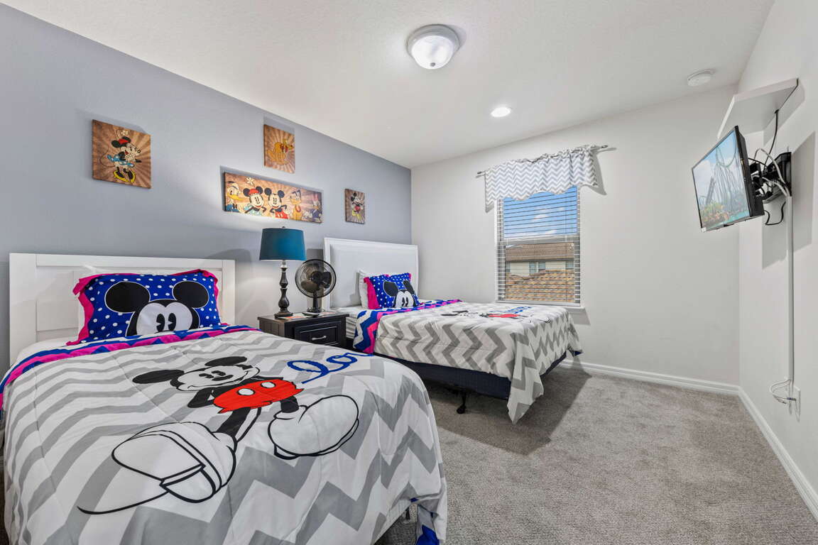 Themed Kids’ Room (Upstairs): Features two twin beds in a playful, family-friendly setting — perfect for younger travelers.