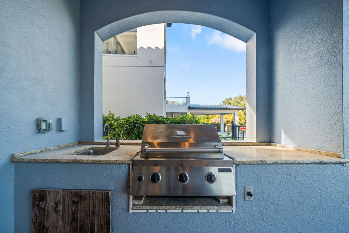 Outside, your private backyard oasis awaits: a sparkling pool, built-in BBQ grill, and serene views overlooking the lush golf course. Whether enjoying a sunny afternoon swim or a sunset barbecue, this space is designed for ultimate relaxation.