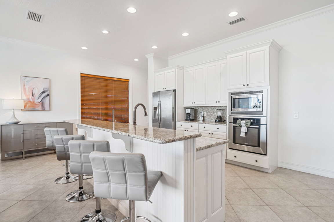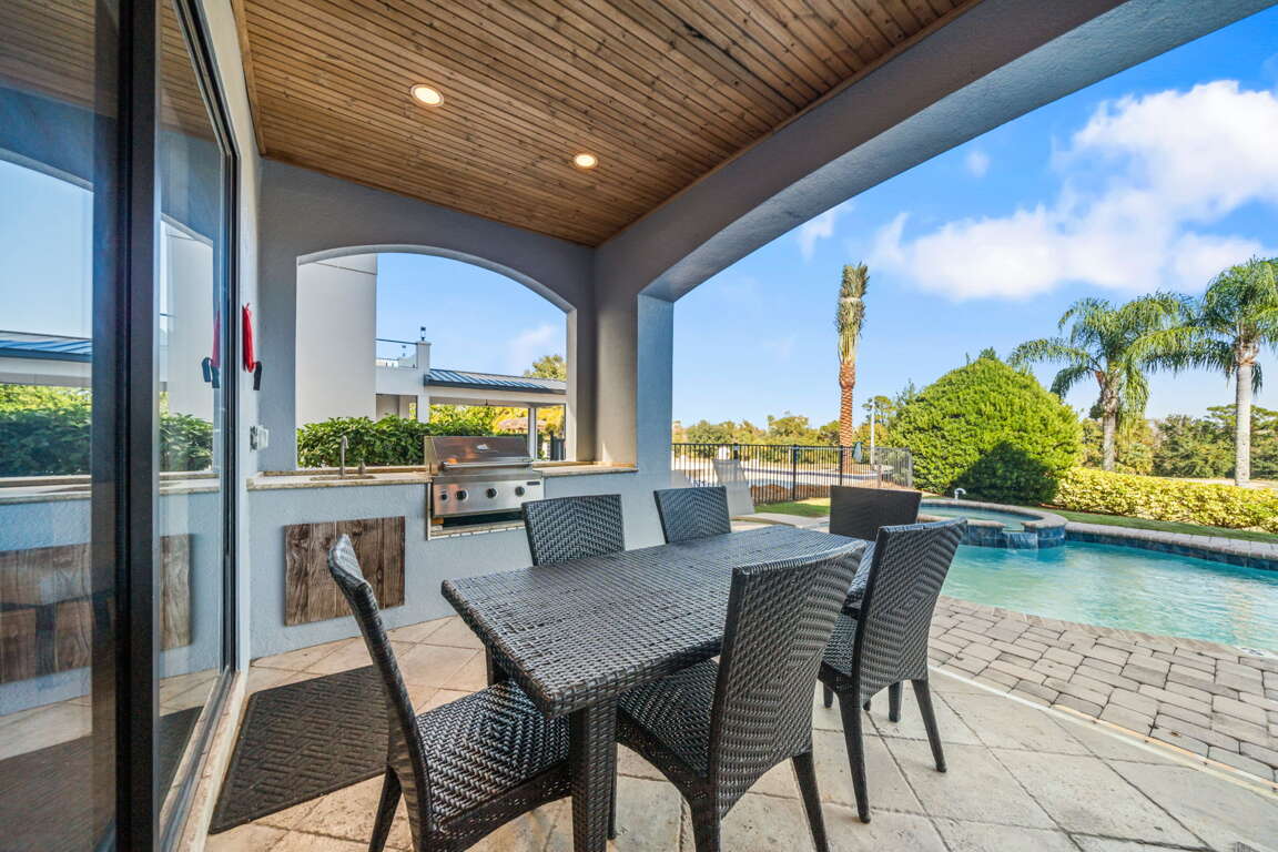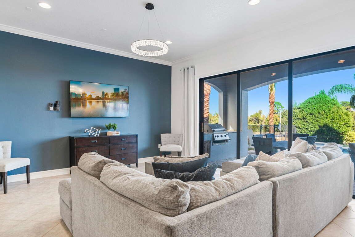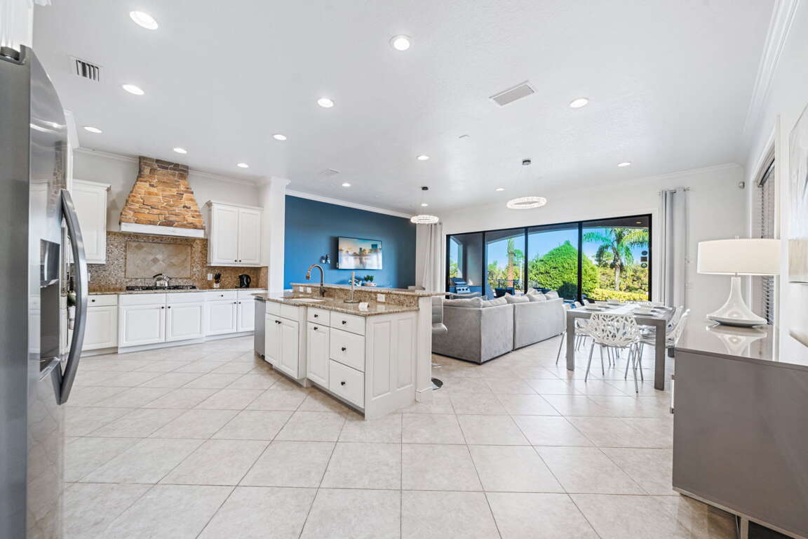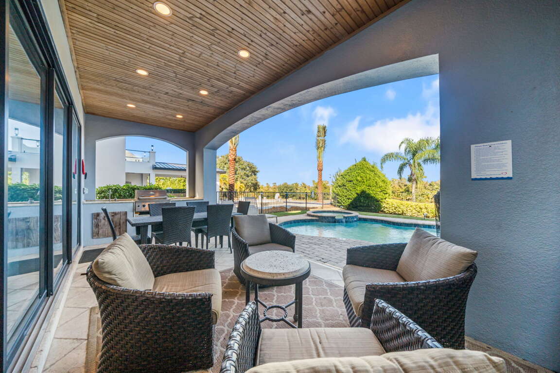 Step outside to your private backyard oasis featuring a sparkling pool, built-in BBQ, and serene golf course views. Guests have access to multiple community pools, including the Cove at Seven Eagles, and nearby H2O Waterpark is just 5 minutes away. Golf enthusiasts can book tee times during the summer months and explore other world-class courses in Central Florida, the golf capital of the world.