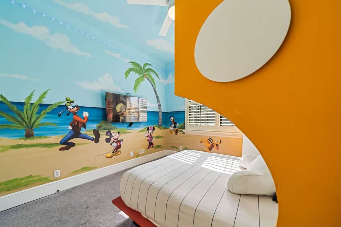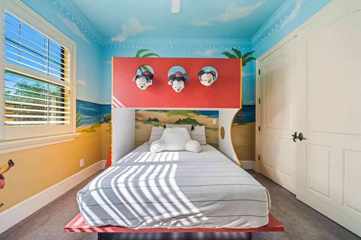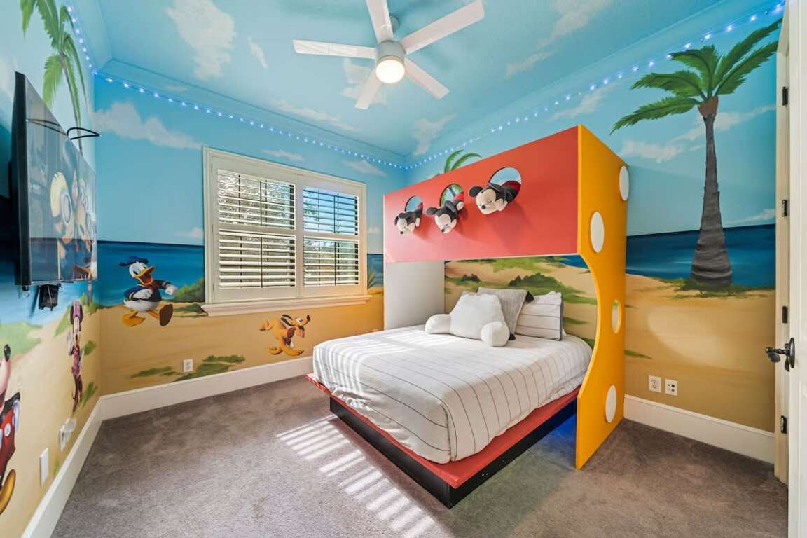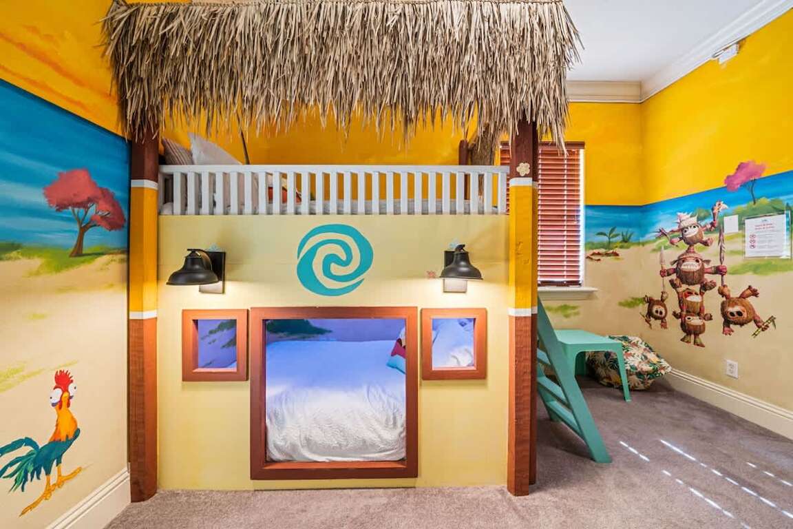 Upstairs, custom-designed bunk bedrooms bring a touch of magic for younger guests, offering playful spaces that make bedtime part of the fun. Two king master suites provide hotel-style comfort and privacy for parents or grandparents, giving everyone a place to relax after a full day of excitement.