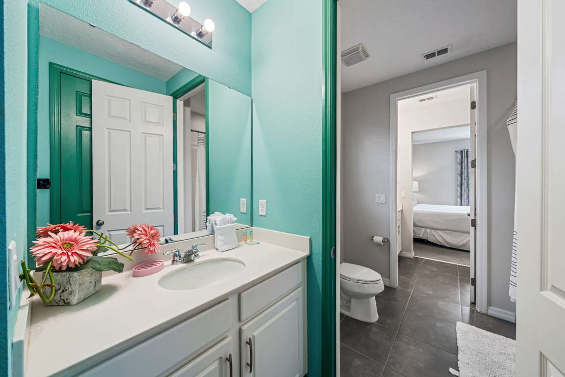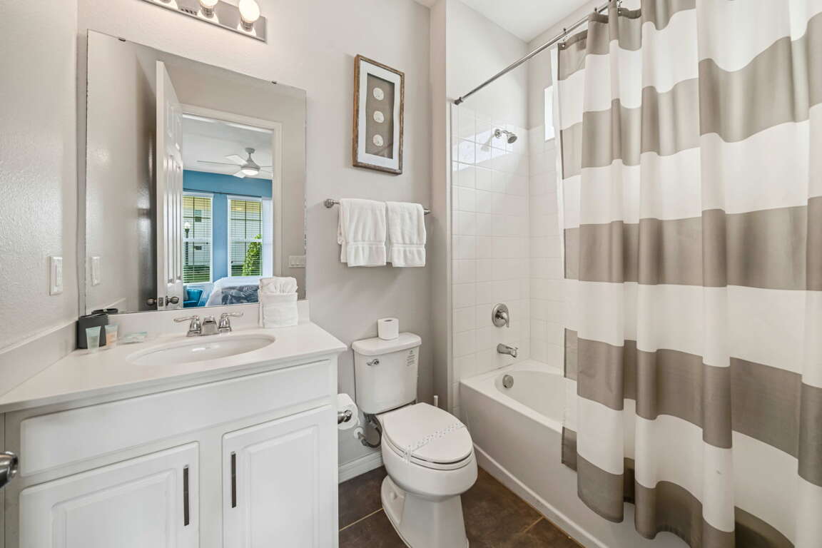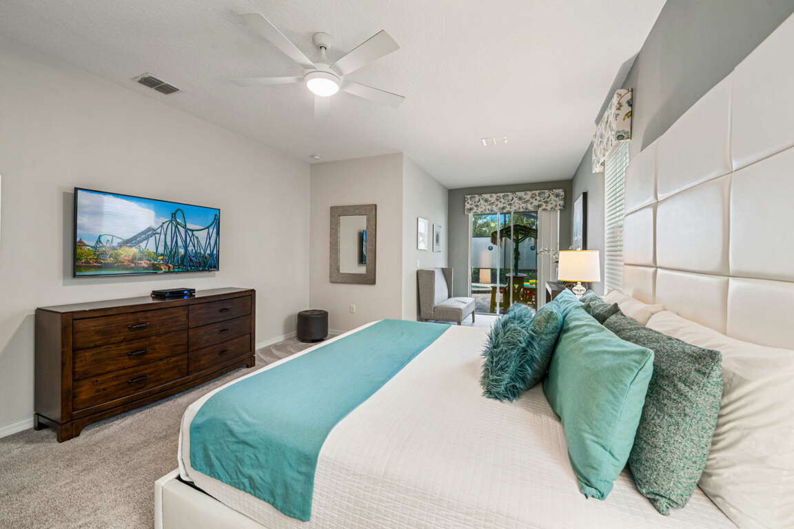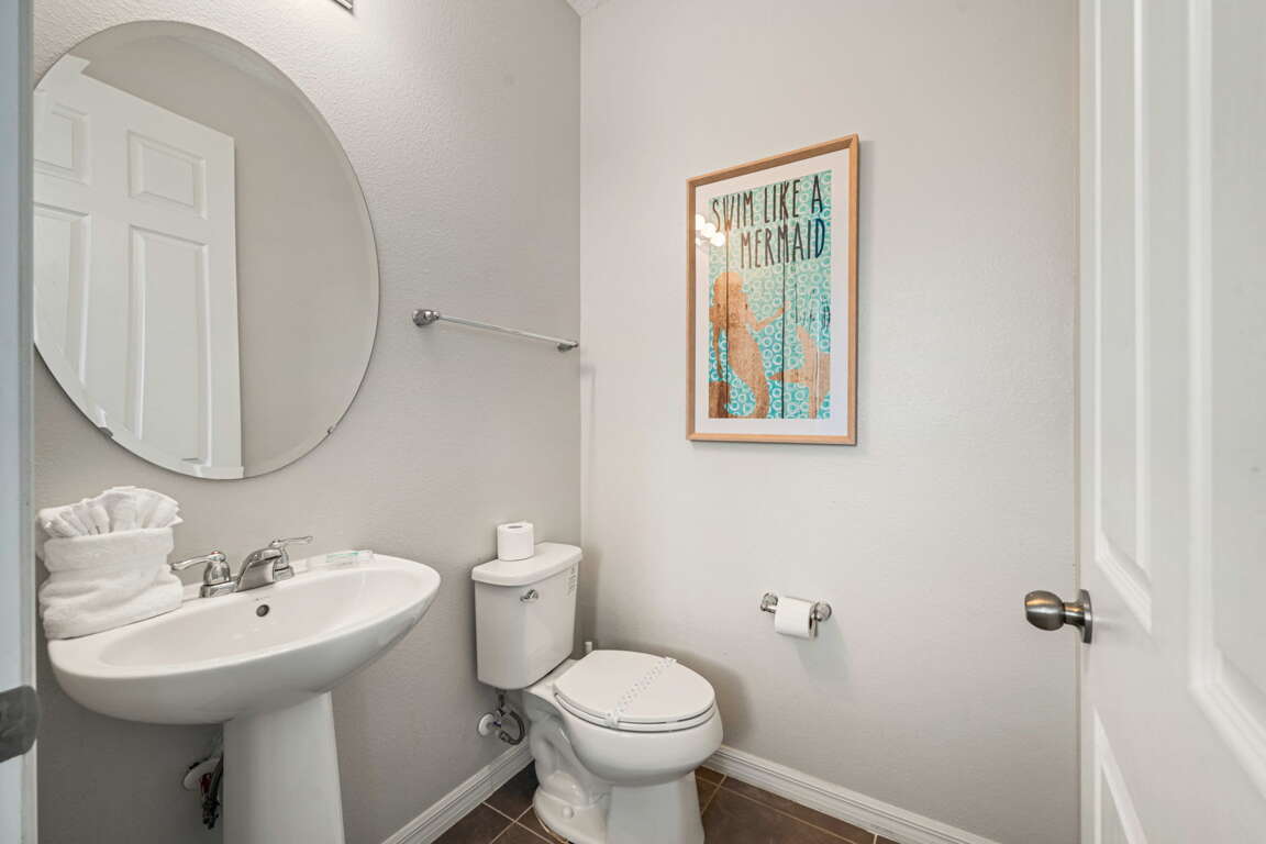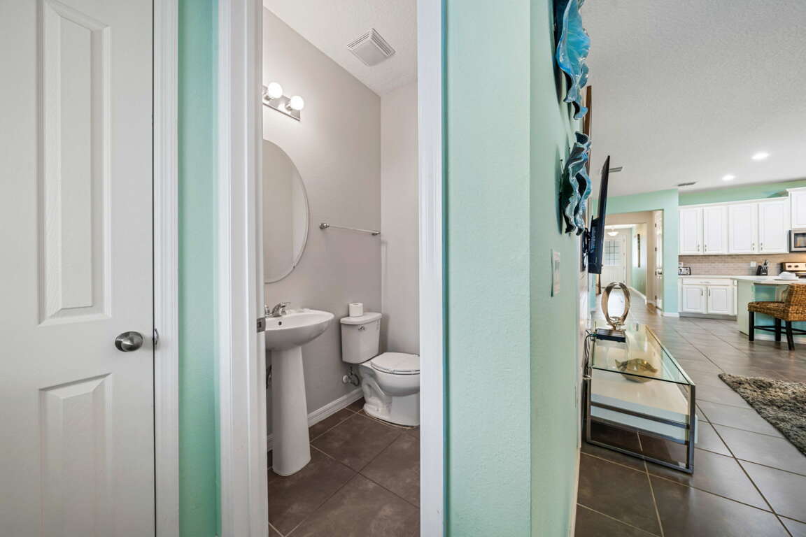 Step outside to your private screened pool area, where the fun continues under the Florida sun. Whether you’re swimming, lounging poolside, or winding down after a full day of activities, this outdoor space adds another layer of enjoyment to the home and pairs perfectly with the resort amenities just steps away.