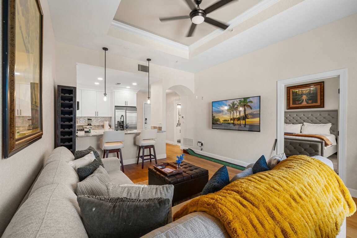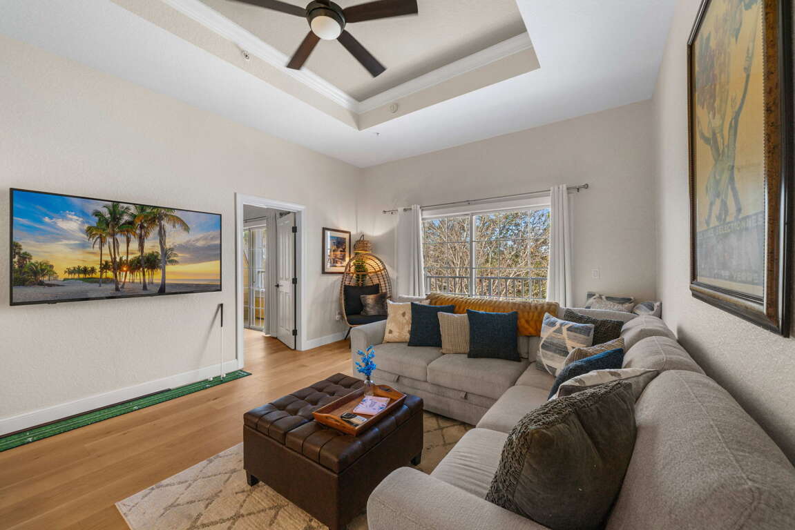 Perfectly located in the heart of Reunion Resort, this inviting Seven Eagles condo is just steps from the Cove at Seven Eagles pool and directly across from the Reunion Grande. Enjoy a walkable resort setting, easy access to dining and attractions, and a relaxing home base close to Island H2O Waterpark, Disney, and the best of Central Florida. Tucked into one of Reunion Resort’s most desirable locations, Seven Eagles Hideaway at The Grande offers the perfect balance of resort atmosphere, walkability, and relaxed comfort. This inviting condo is just steps from the Cove at Seven Eagles, where guests can enjoy palm-lined views, a beautiful resort-style pool, hot tubs, and poolside dining that set the tone for an easygoing Florida escape.