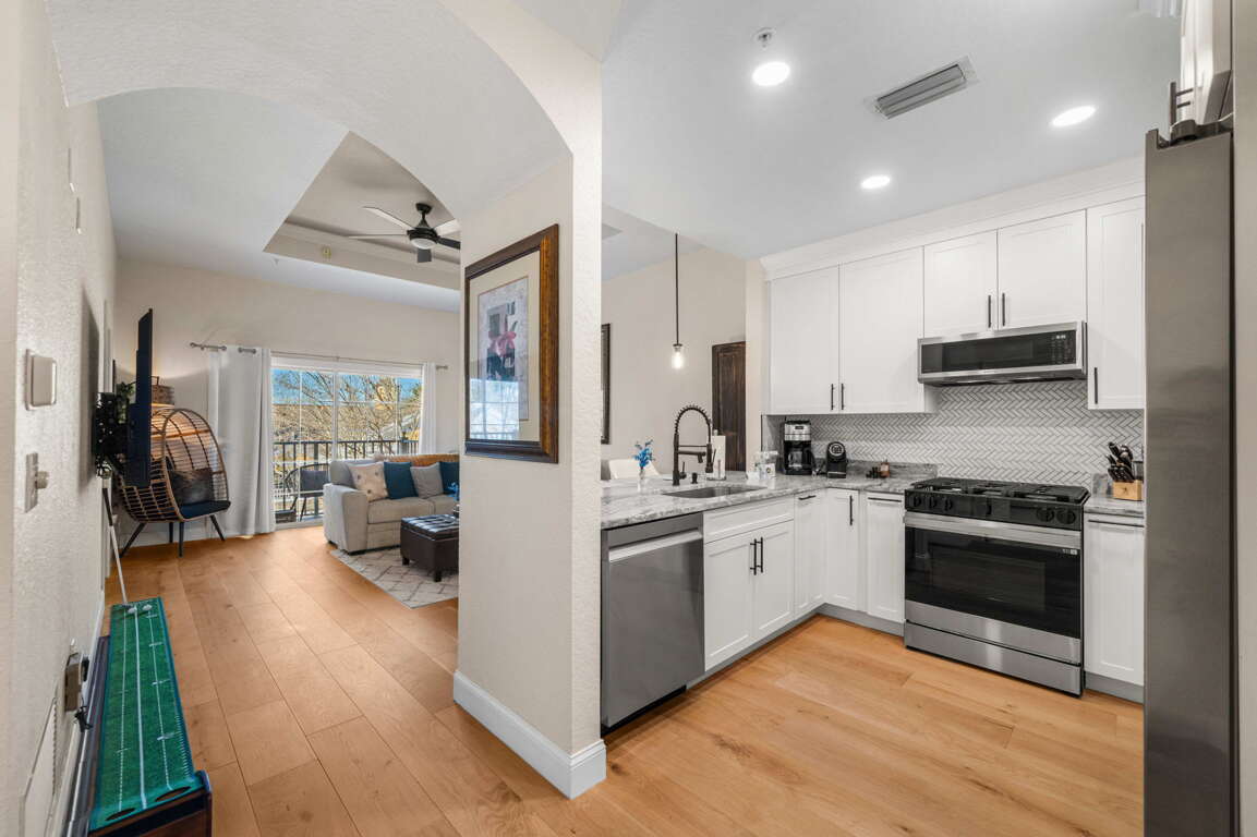 While this property does not include access to Reunion’s private waterpark or on-site golf membership, guests are only a short drive from Island H2O Live!, one of Central Florida’s most popular waterparks. For golf enthusiasts, Central Florida is often referred to as the golf course capital of the world, with an abundance of outstanding courses just minutes away. Reunion’s courses themselves are also frequently available to the public during the warmer months through the GolfNow app, offering flexibility for those looking to tee off during their stay.
