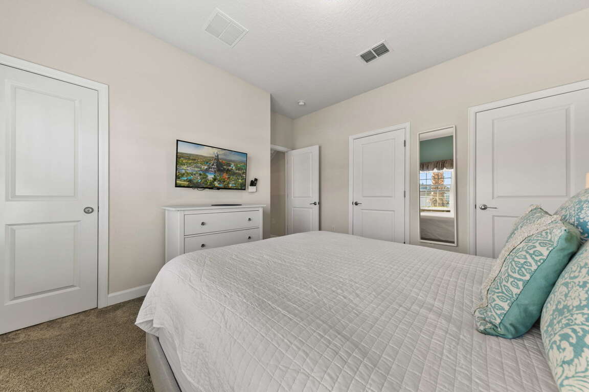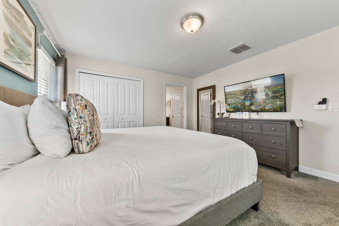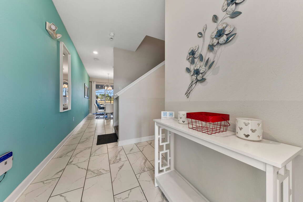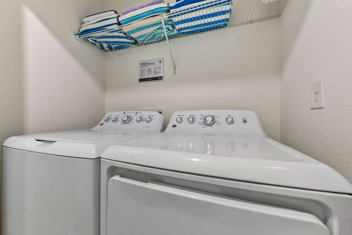 Upstairs, the home continues to impress with a spacious king primary suite, a colorful Mario-inspired twin bedroom that kids absolutely love, and an additional queen bedroom for flexible sleeping arrangements. The upstairs laundry area adds extra convenience, especially for longer stays and pool days.