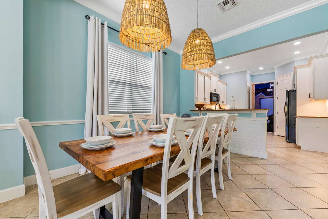 While this home does not include access to the resort waterpark or golf amenities, guests can enjoy one of Reunion’s most popular areas — Seven Eagles Cove. This vibrant hub features a zero-entry pool, fitness center, arcade, and pool bar, and is often considered the heart of the resort. Just behind the condos on Sandy Ridge Drive, you’ll also find a kid-friendly splash pad that’s perfect for younger guests.